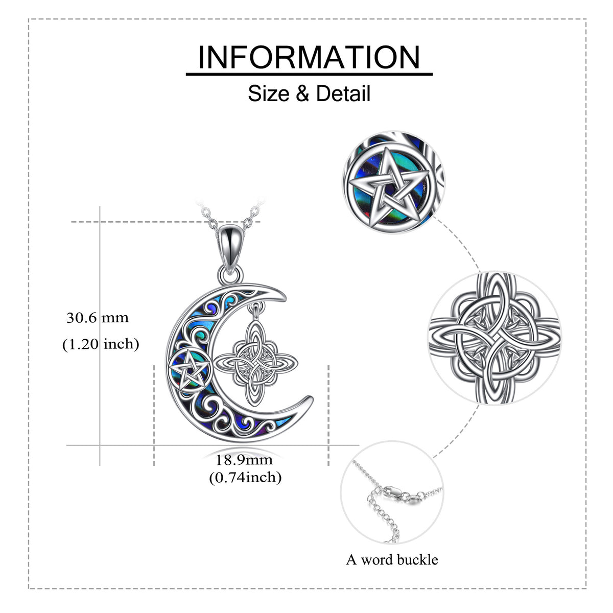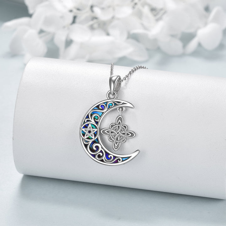 Crafted from high-quality Sterling Silver, this stone-free Pendant Necklace features an intricately designed Celtic Knot, a Witch Knot, and a mesmerizing Abalone Shellfish Moon motif in a Retro Silver finish.