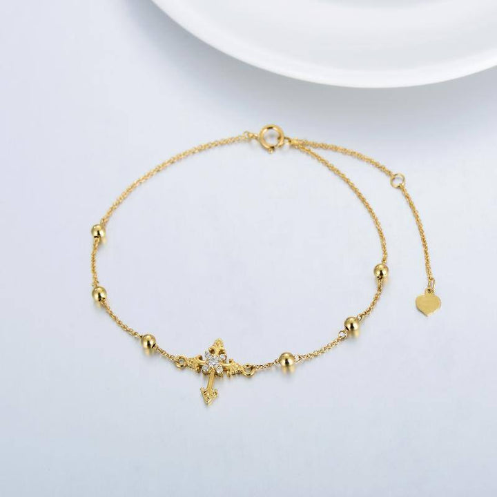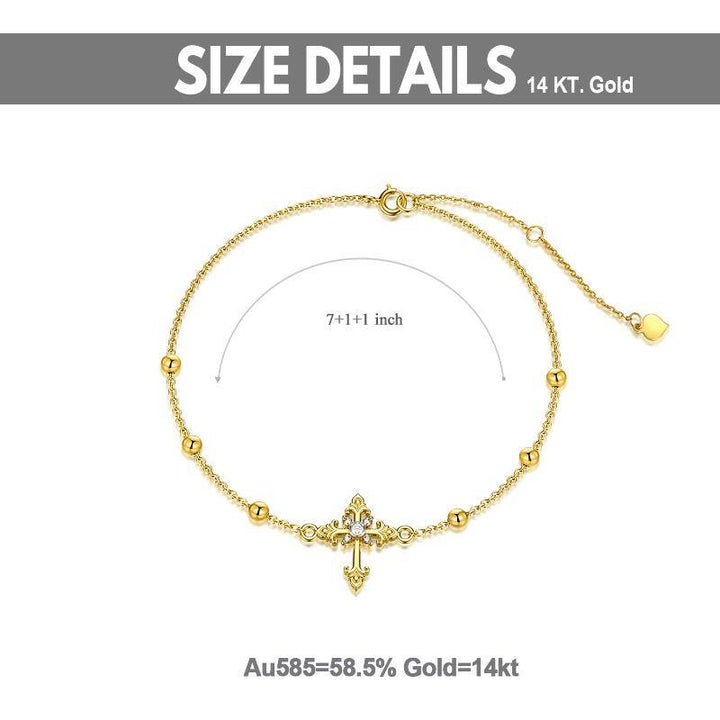 14K gold; Moissanite cross charm; gold bracelet chain.