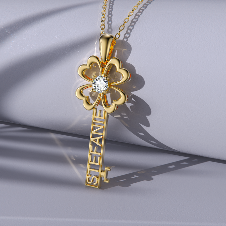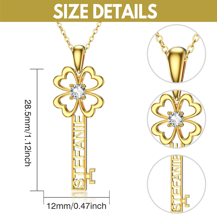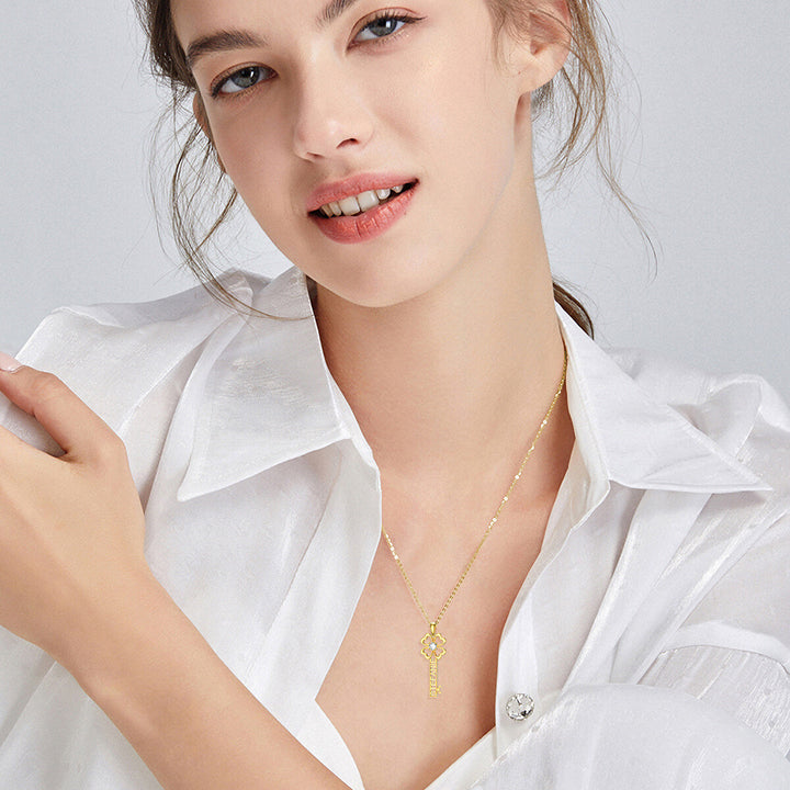 This 14K Gold Cubic Zirconia Key Pendant Necklace by YFN is a luxurious accessory designed to add a touch of classic elegance to any woman's jewelry collection. Crafted from 14K gold, the exquisite pendant showcases a beautifully detailed key symbol that glistens with high-quality Cubic Zirconia stones. This timeless design combines classic elegance with a modern twist, making it an ideal accessory for any occasion, seamlessly complementing both daytime and evening outfits.