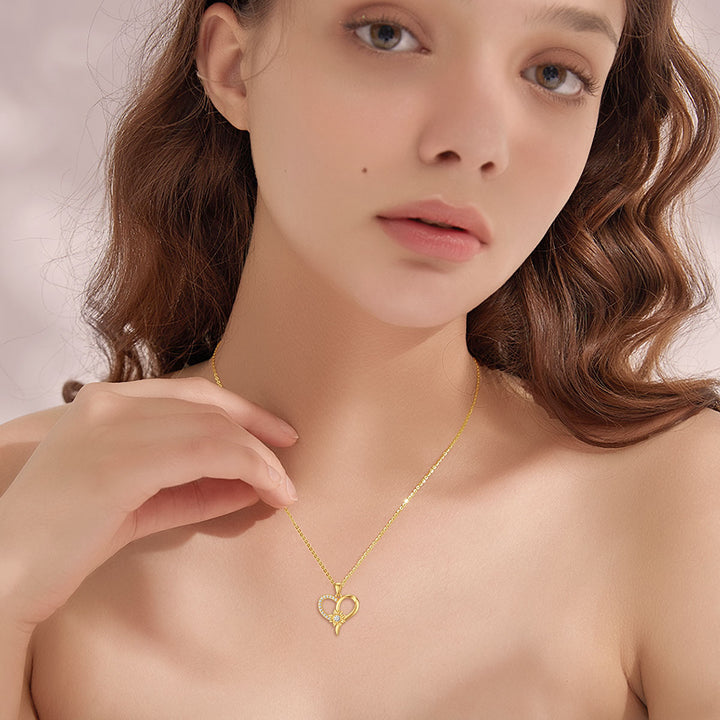 14K Gold Cubic Zirconia Heart Pendant Necklace