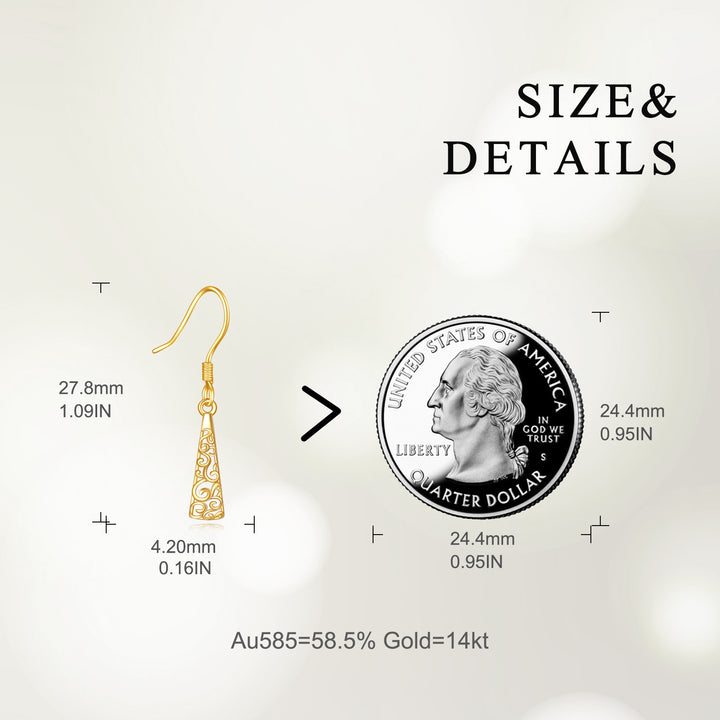 These no-stone Women's Drop Earrings are crafted from 14K Gold, Featuring a Stunning Flower of Life Design.