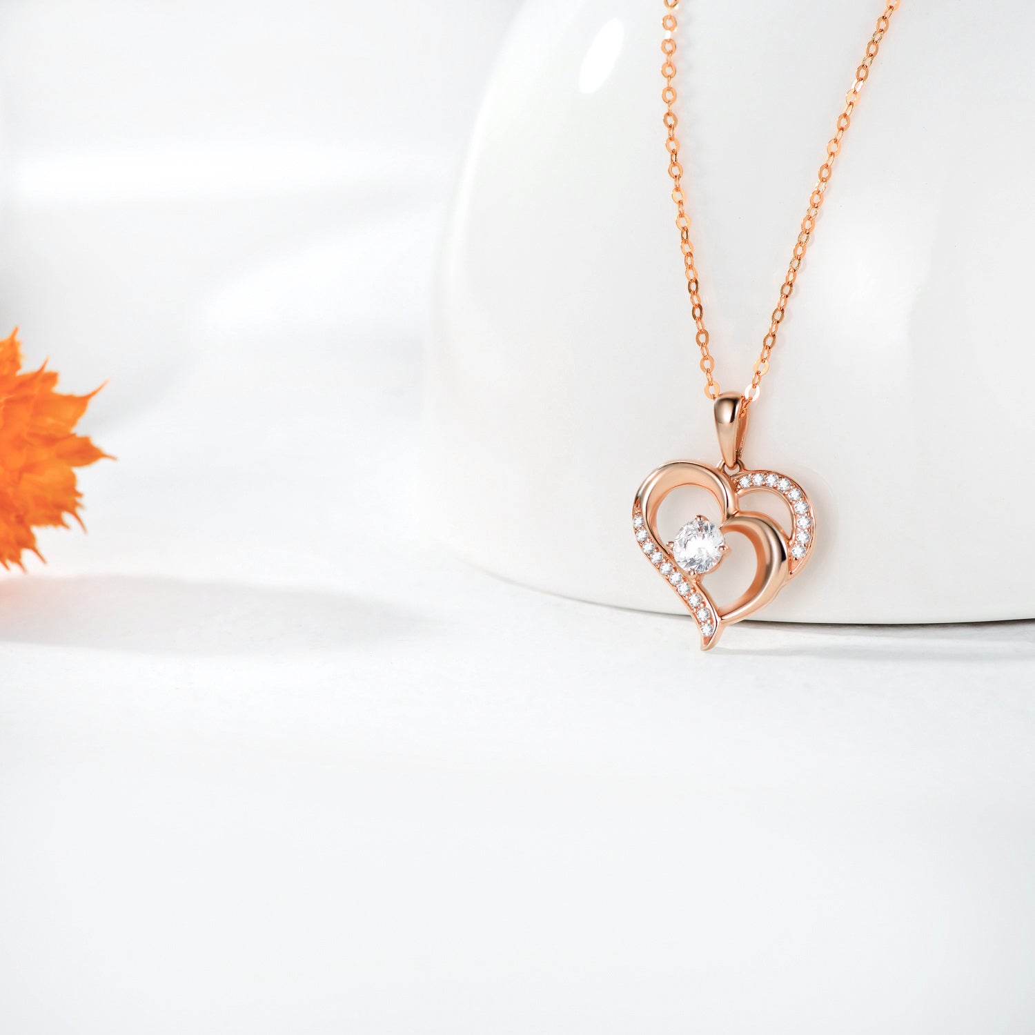 14K Rose Gold Moissanite Heart With Heart Pendant Necklace For Women