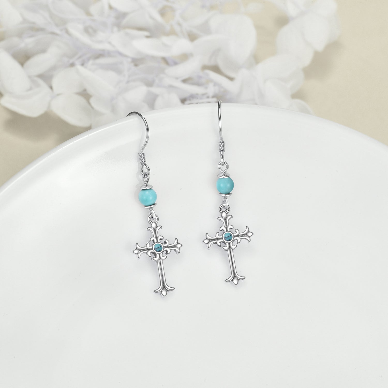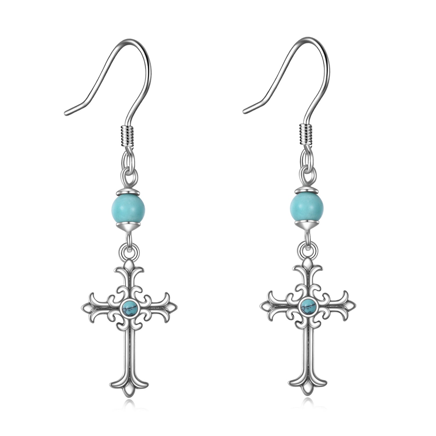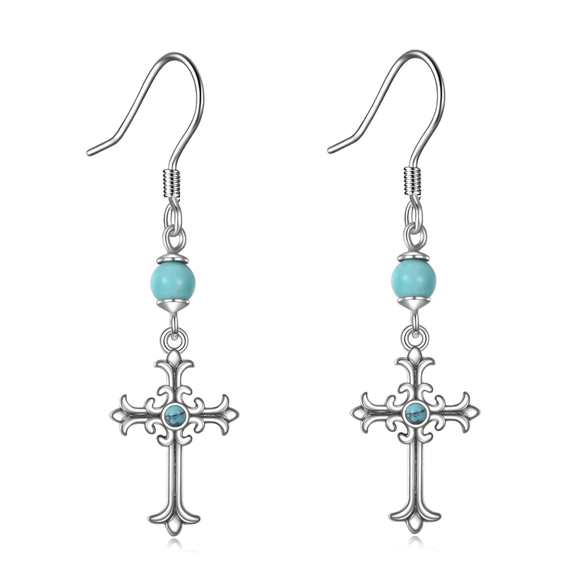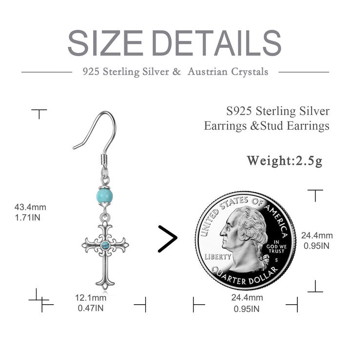 Sterling Silver Circular Shaped Turquoise Cross Drop Earrings