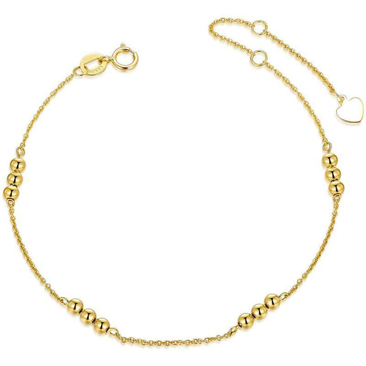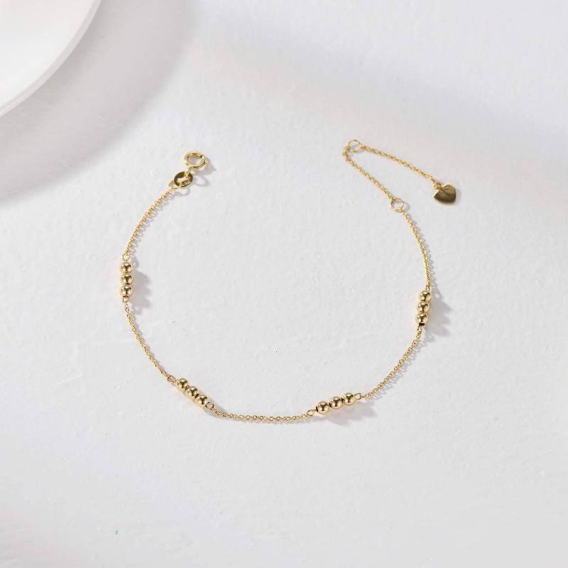 This 9K Gold Round Bead Station Chain Bracelet by YFN is a beautifully crafted, stone-free accessory that features Round Beads uniformly spaced along the chain. Meticulously designed from 9K Gold, it radiates refined simplicity and timeless elegance. The classic gold hue ensures the bracelet matches effortlessly with any outfit, making it a versatile addition to your jewelry box.