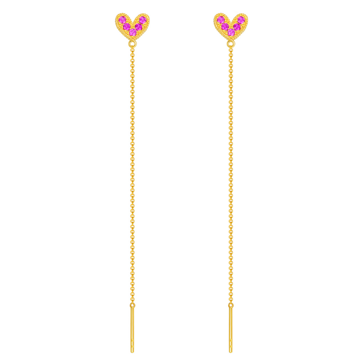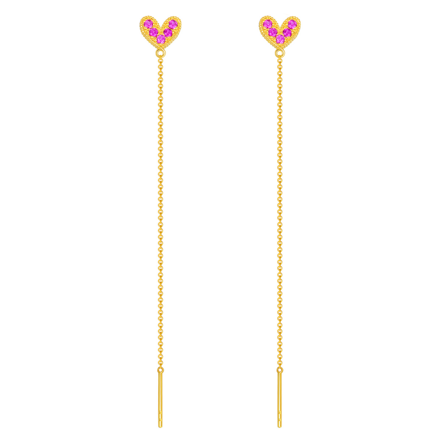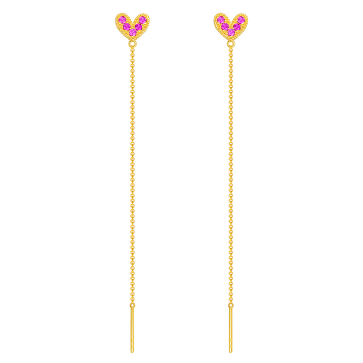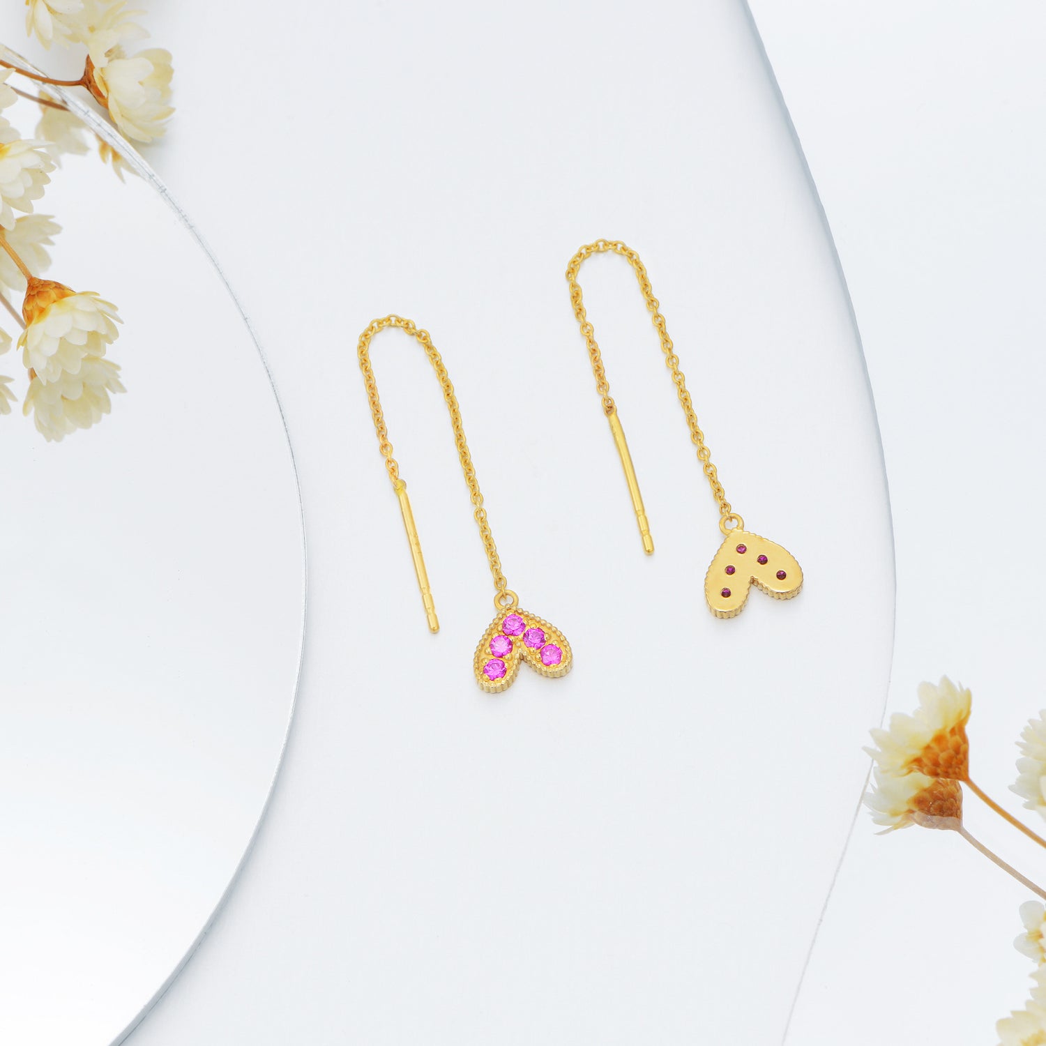 These Women's Drop Earrings are Crafted from 14K Gold and feature a combination of Round Zircon stones and Heart-Shaped Accents.