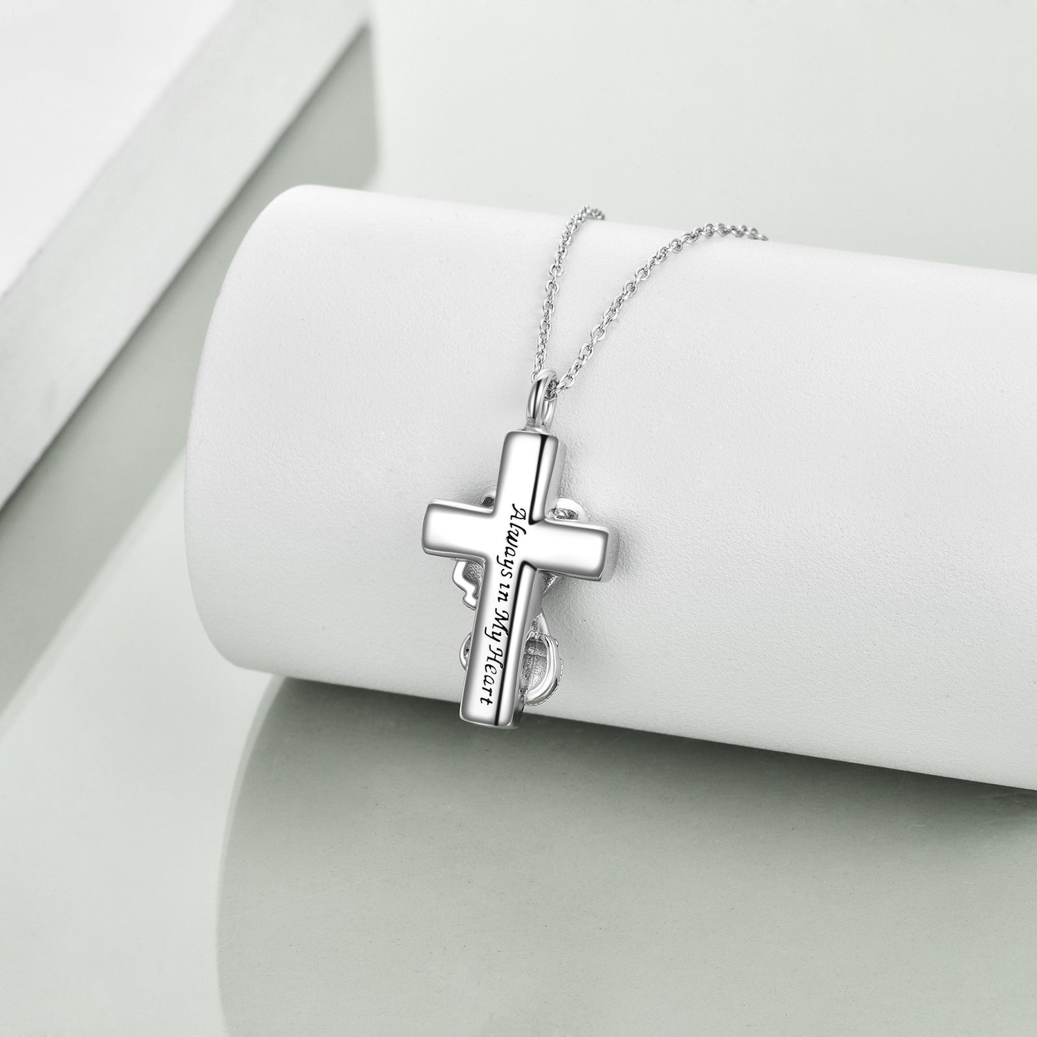 This Sterling Silver Cubic Zirconia Ladybug and Cross Urn Necklace for Ashes with Engraved Word by YFN beautifully merges remembrance with refined elegance. Designed as a heartfelt keepsake, it features a sparkling CZ-adorned ladybug symbolizing luck and light, paired with a meaningful cross representing faith and eternal love. The discreet urn chamber allows cherished memories to be kept close, while the radiant white gold plating enhances the necklace’s luminous appeal. Perfect for women seeking a personal tribute piece, it combines sentiment, symbolism, and sophisticated craftsmanship into a touching expression of devotion.