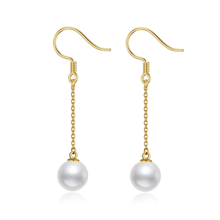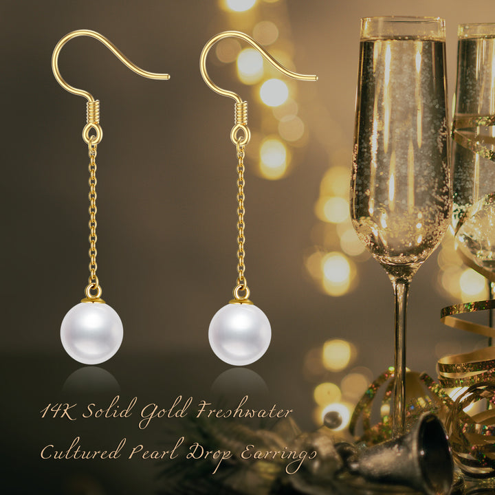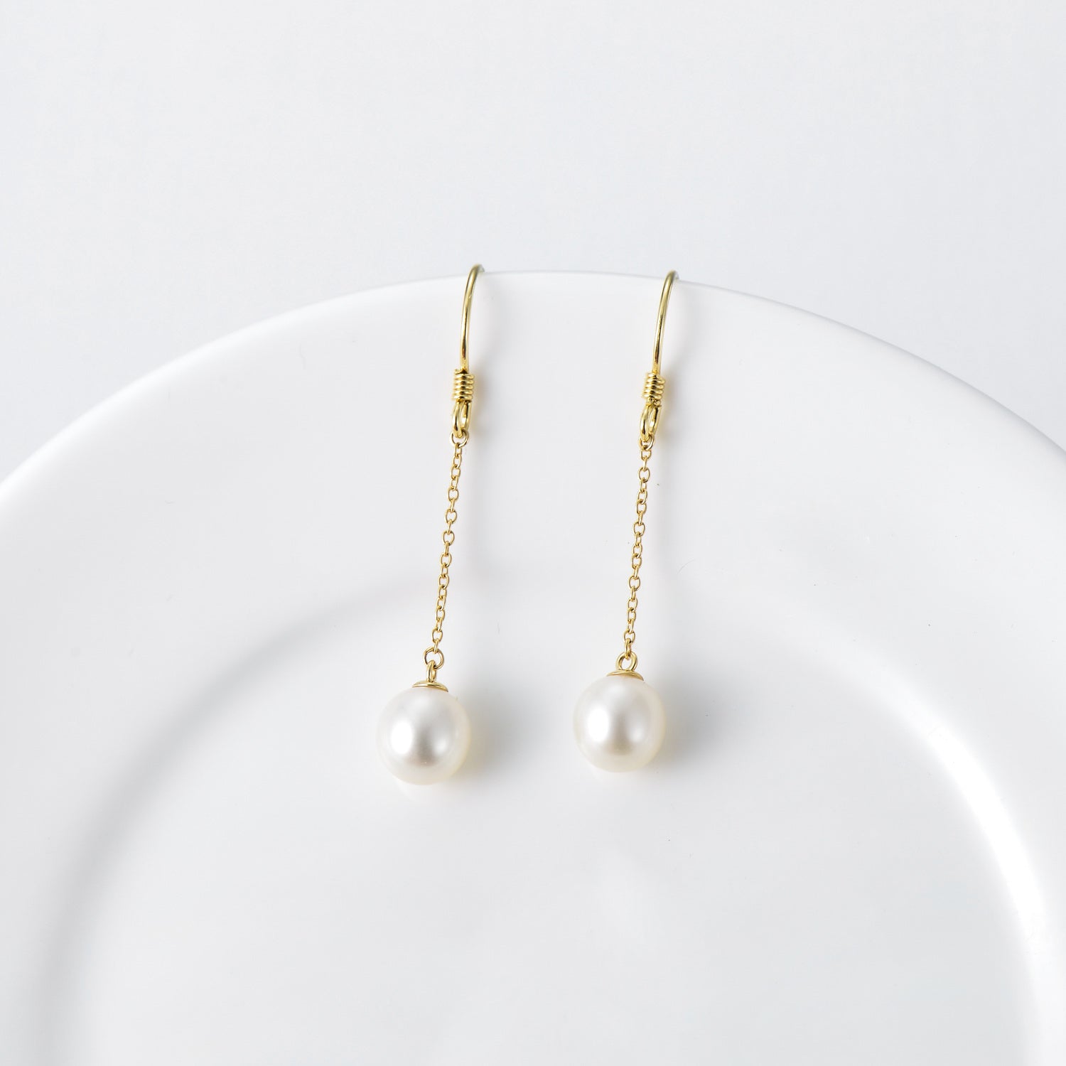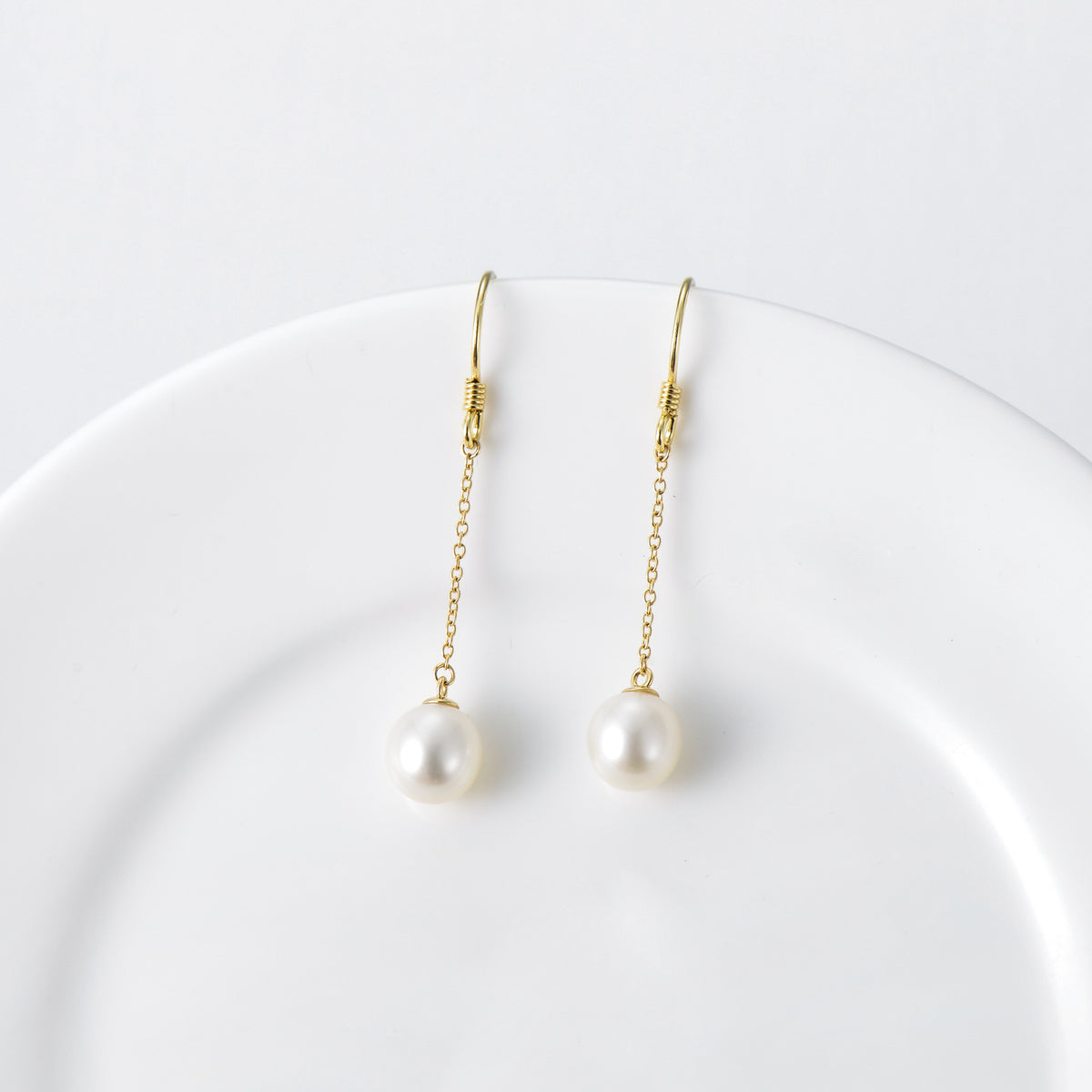 These Stud Earrings are crafted from 14K Gold, Adorned with Lustrous Pearls.