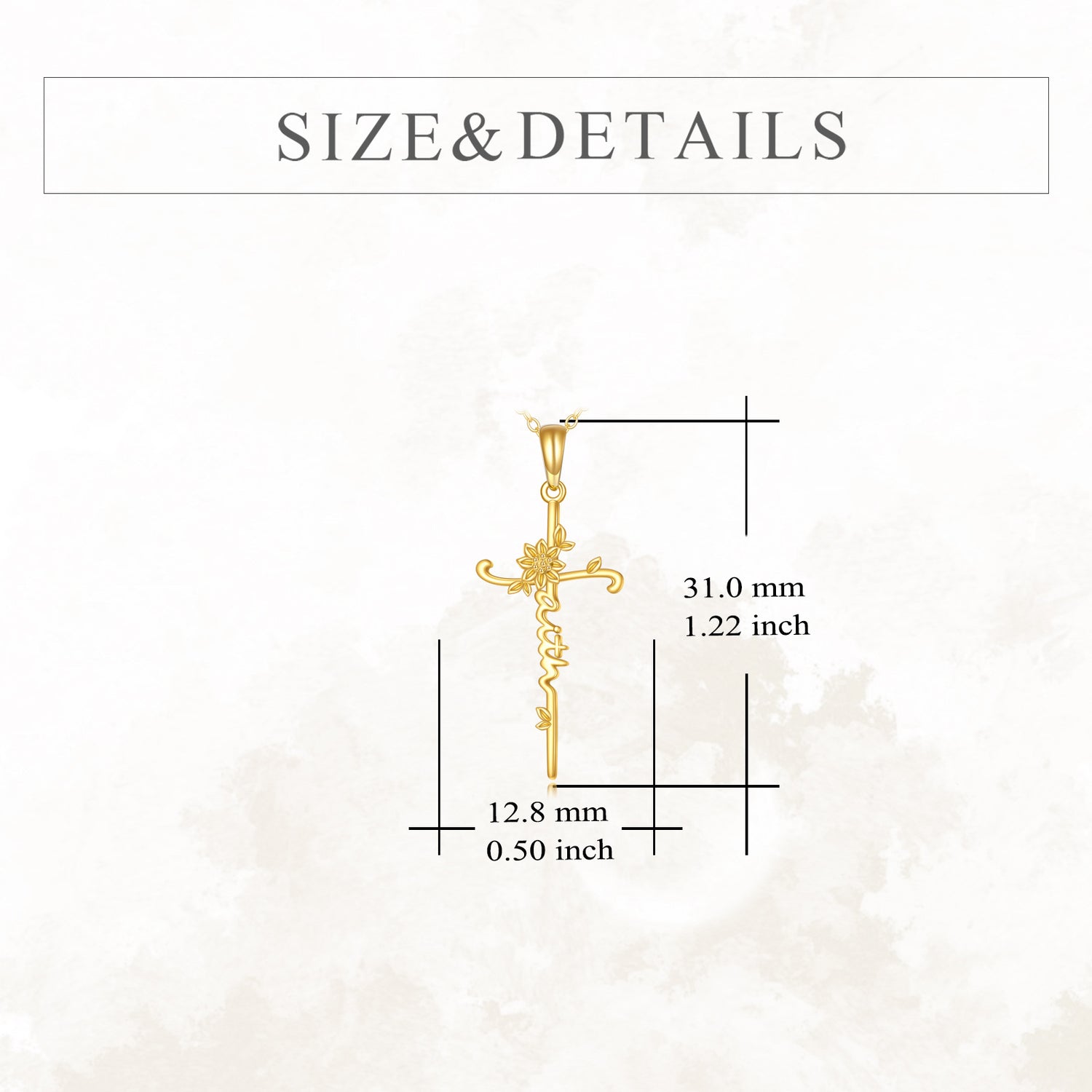 This 14K Gold Sunflower & Cross Pendant Necklace by YFN is designed to embody faith and positivity. Crafted from high-quality 14K gold (no stones), this elegant necklace features an intricate sunflower motif, symbolizing warmth and happiness, combined with a cross element. It is a durable and radiant piece for women to wear their beliefs close to their heart with floral charm.
