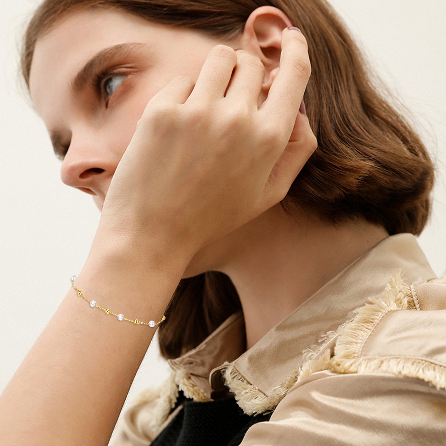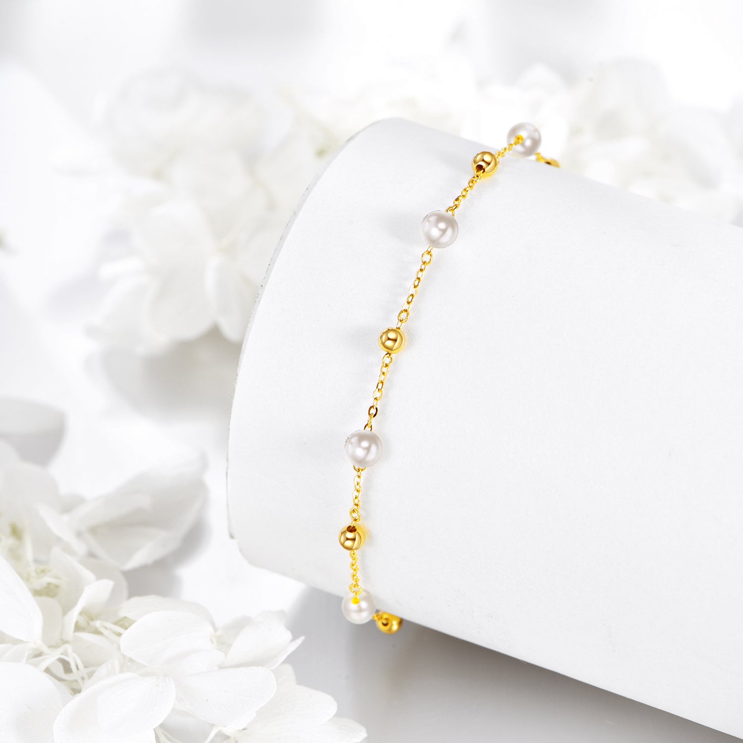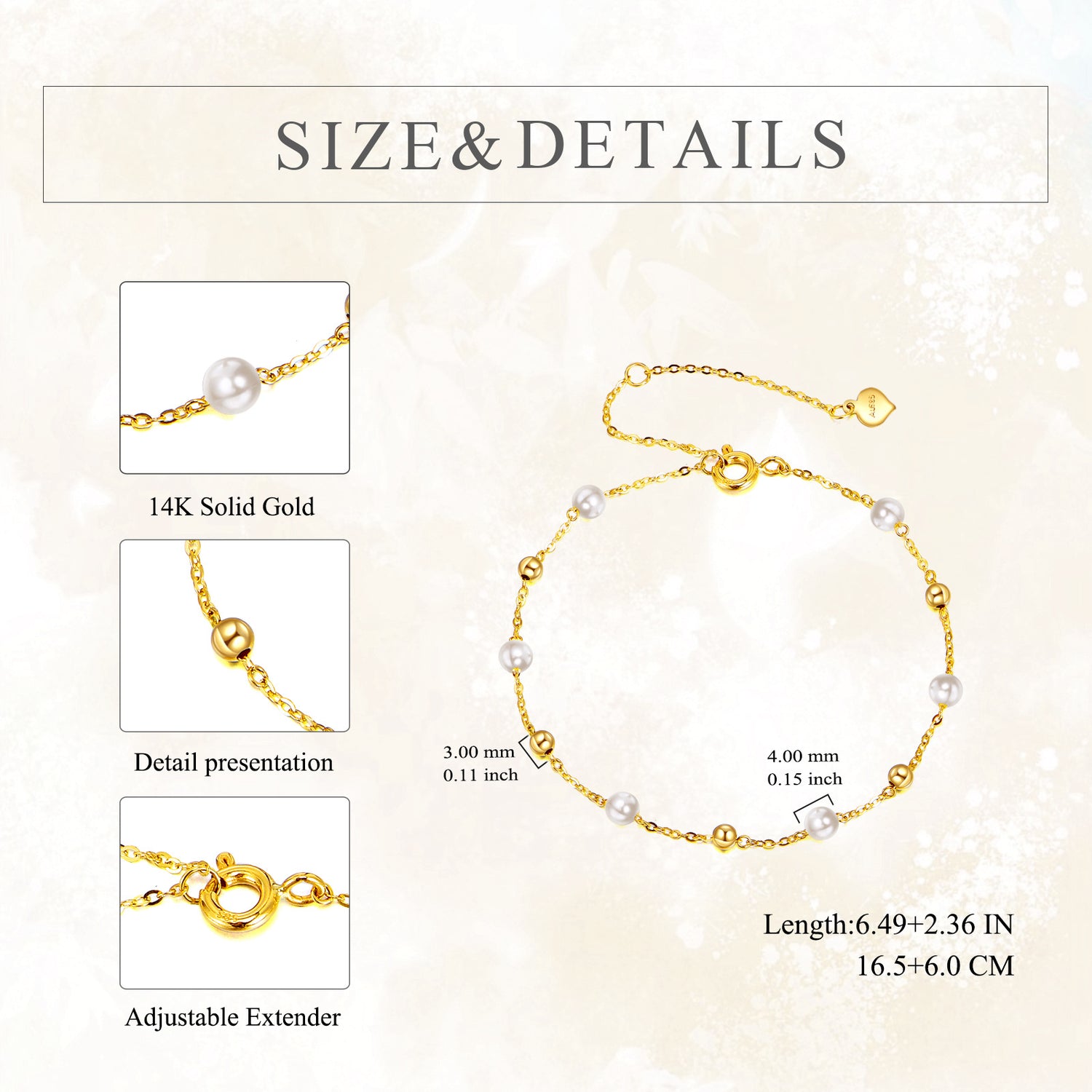 This 14K Gold Pearl Bead Bead Station Chain Bracelet by YFN is designed exclusively for women who appreciate timeless elegance. This gorgeous Bracelet features a lustrous 14K Gold Chain adorned with radiant Pearls and delicate Gold Beads, creating a perfect balance between classic and contemporary sophistication for any occasion.