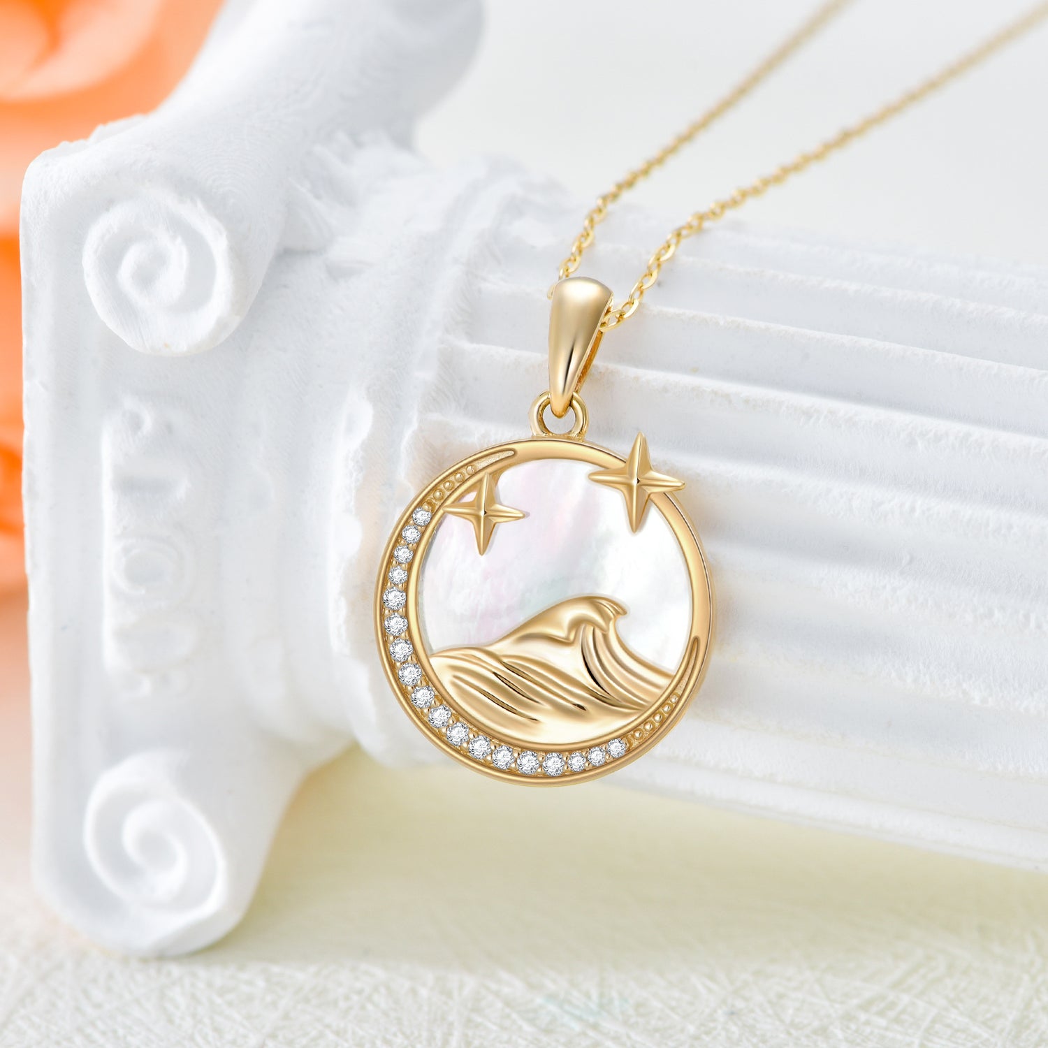 9K Gold Circular Shaped Pearl Moon & Spray Pendant Necklace