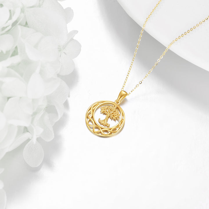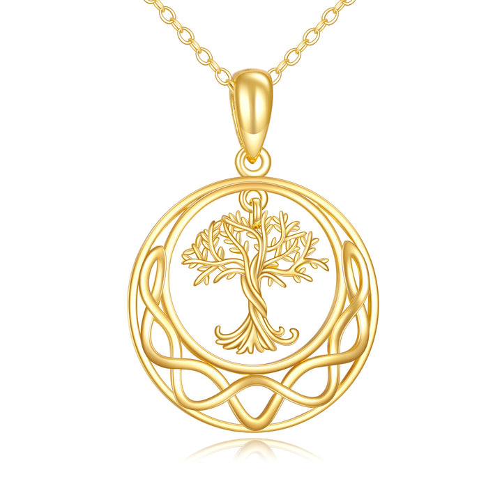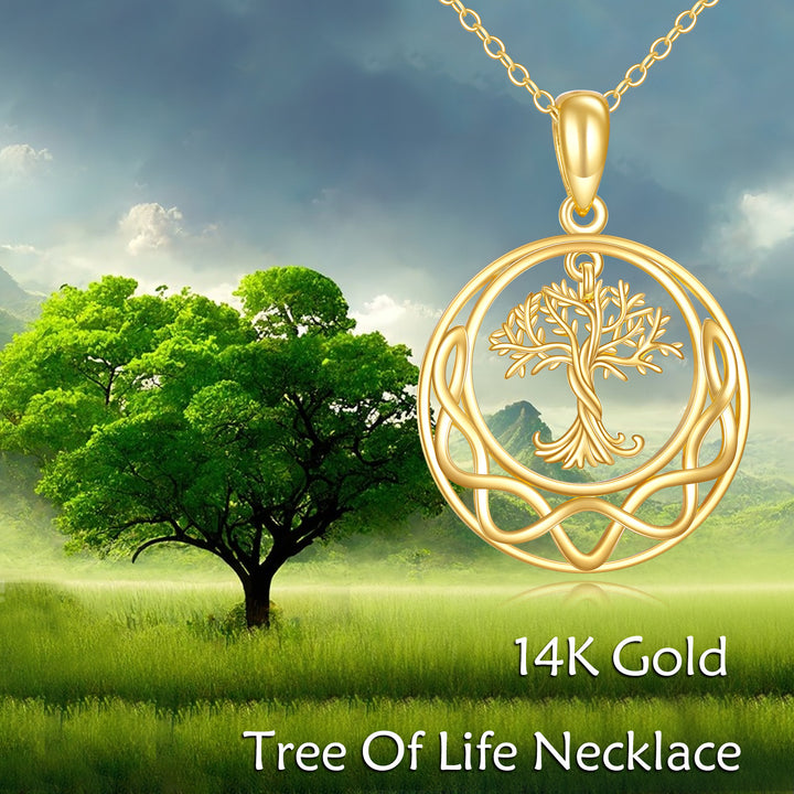14K Gold Tree Of Life & Celtic Knot Pendant Necklace