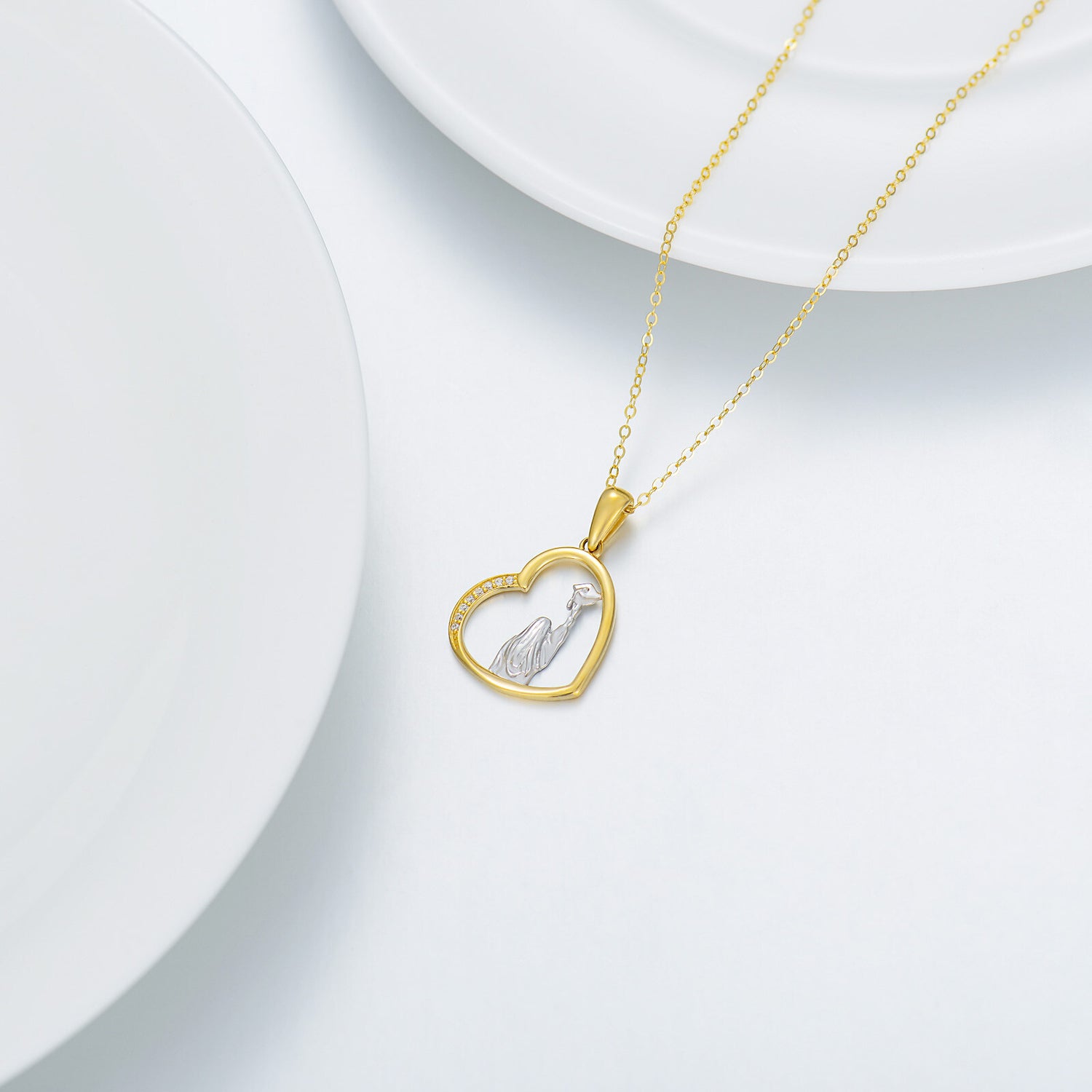 14K Gold Two-Tone Cubic Zirconia Heart & Trencher Cap Pendant Necklace For Women