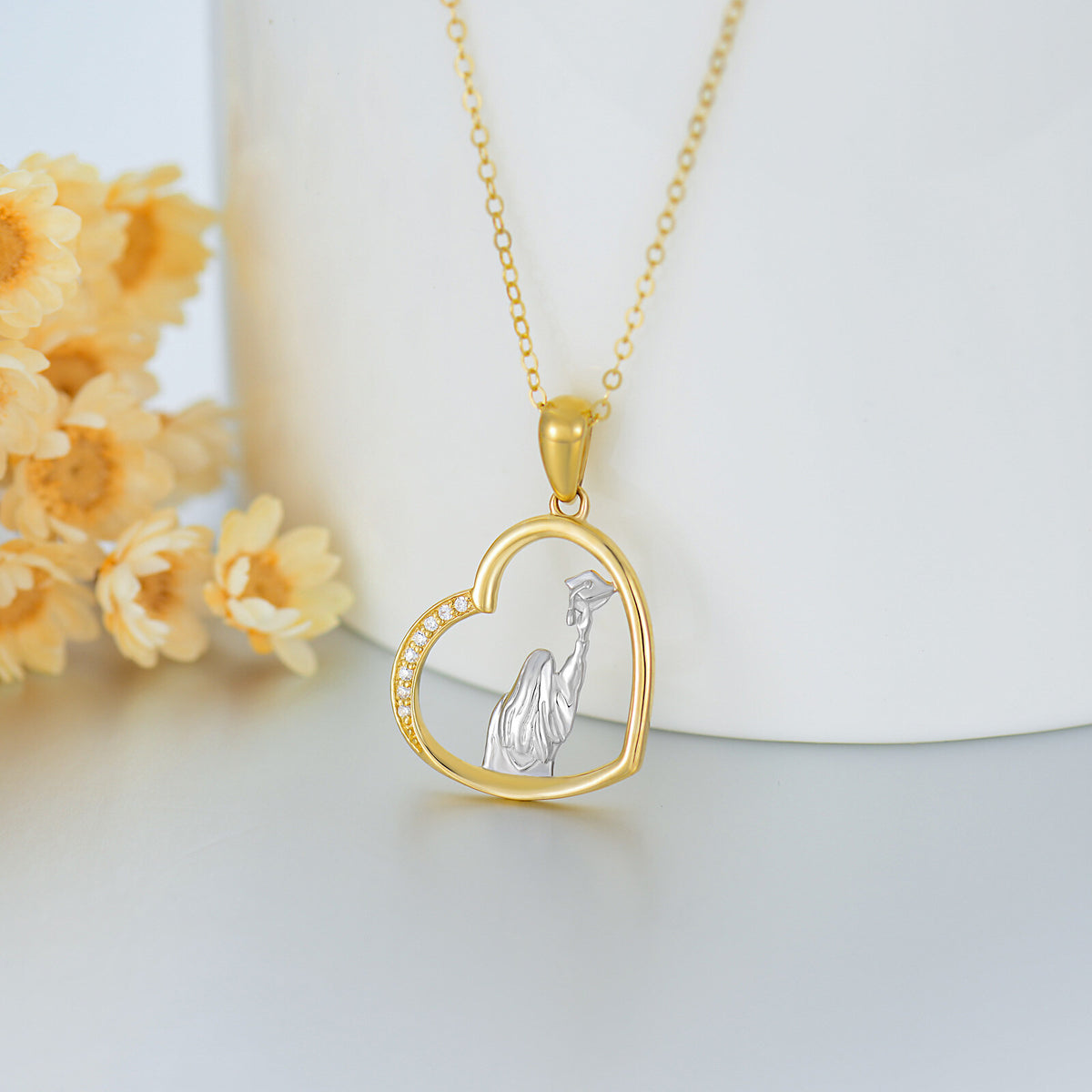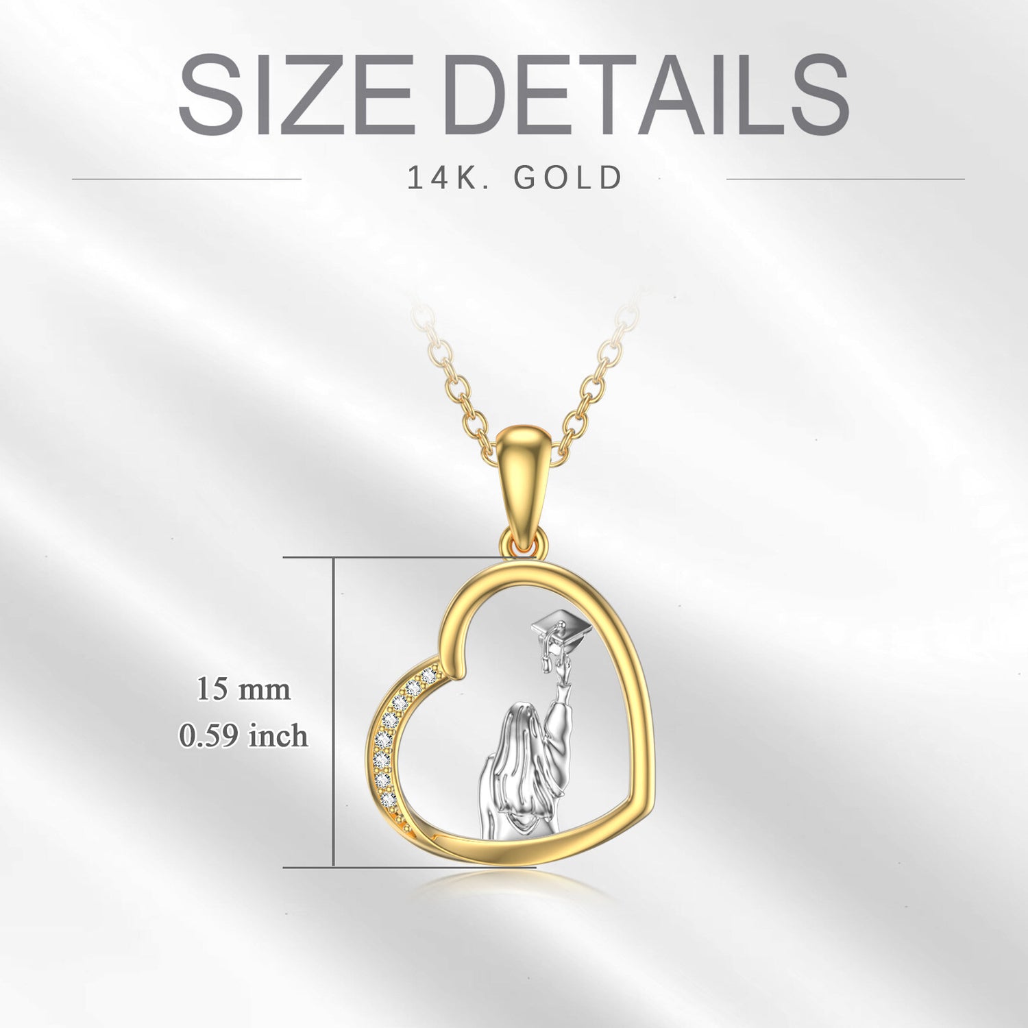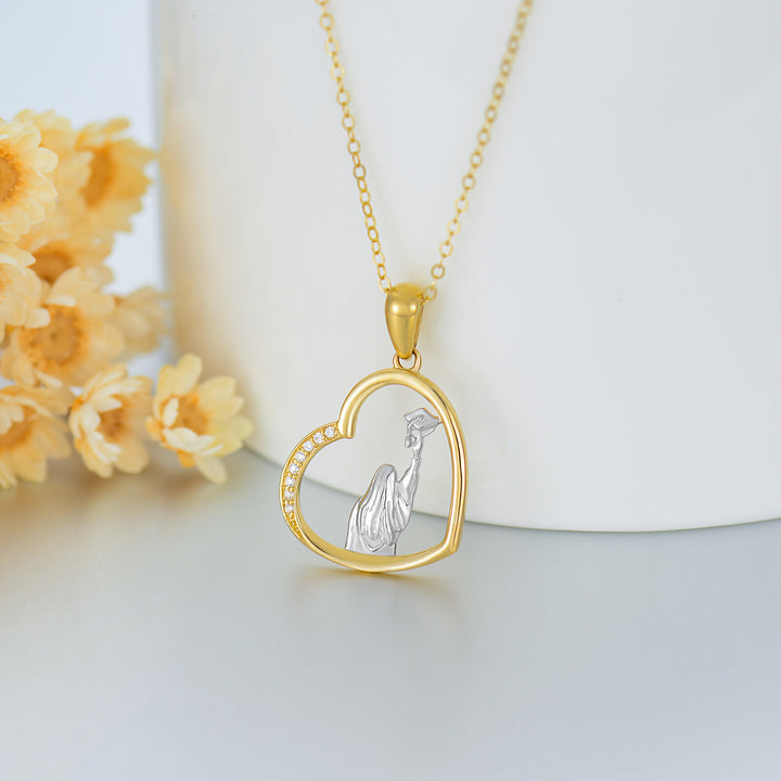 This Heart & Trencher Cap Pendant Necklace by YFN is a sentimental and stylish accessory, perfectly commemorating graduation achievements. The heart-shaped pendant, adorned with dazzling cubic zirconia, symbolizes affection, while the chic trencher cap charm marks new beginnings. Crafted in 14K gold (available in white or yellow), this piece combines luxury and sentimentality, making it an ideal, cherished gift for women celebrating their milestones.