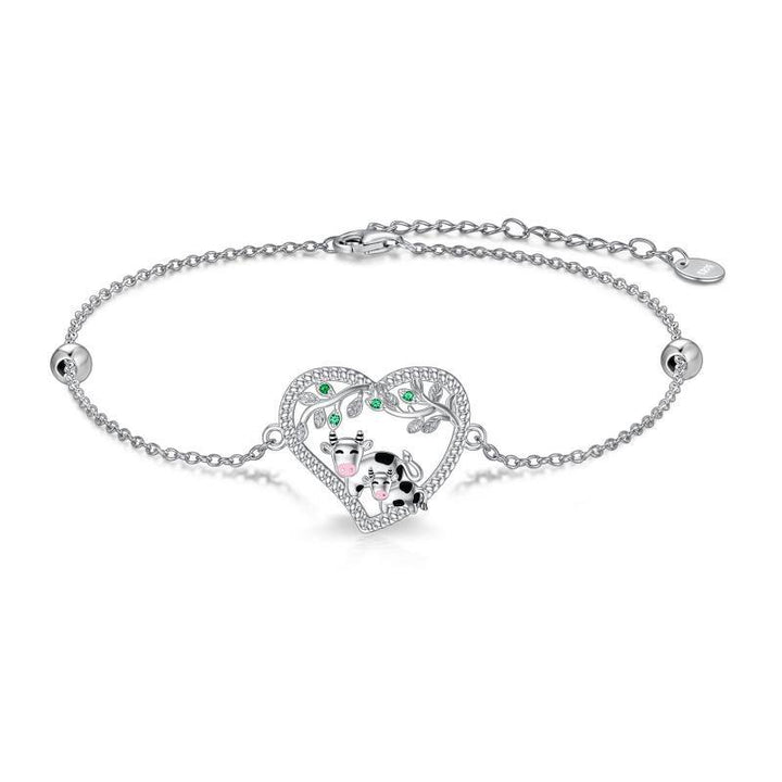 Crafted from premium Sterling Silver with White Gold Plating, this Bead Station Chain Bracelet features sparkling round white Cubic Zirconia accents and Cow & Heart motifs.