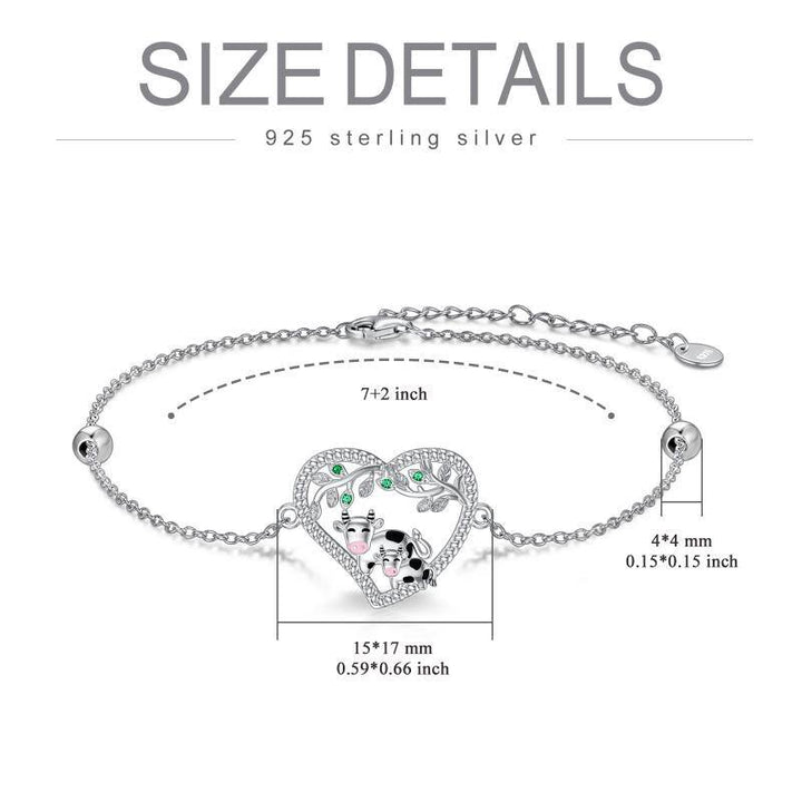 This Sterling Silver Round Cubic Zirconia Cow & Heart Bead Station Chain Bracelet by YFN features charming Cow and Heart motifs, adorned with sparkling round white Cubic Zirconia accents. Expertly designed with a delicate bead station chain and set in luxurious White Gold Plating over sterling silver, it is perfect for the modern woman seeking timeless sophistication with a touch of playful elegance.
