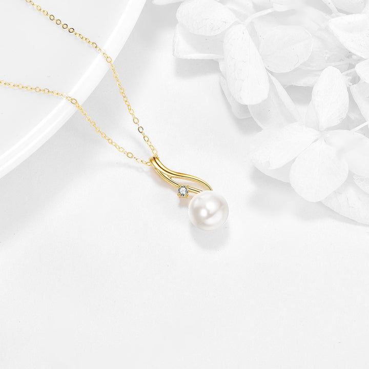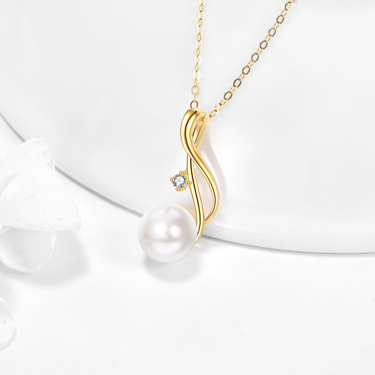 This Circular Shaped Pendant Necklace is crafted from Exquisitely 14K Gold, adorned with Sparkling Cubic Zirconia stones and an Elegant White Pearl Bead.