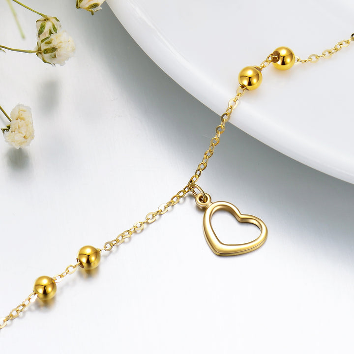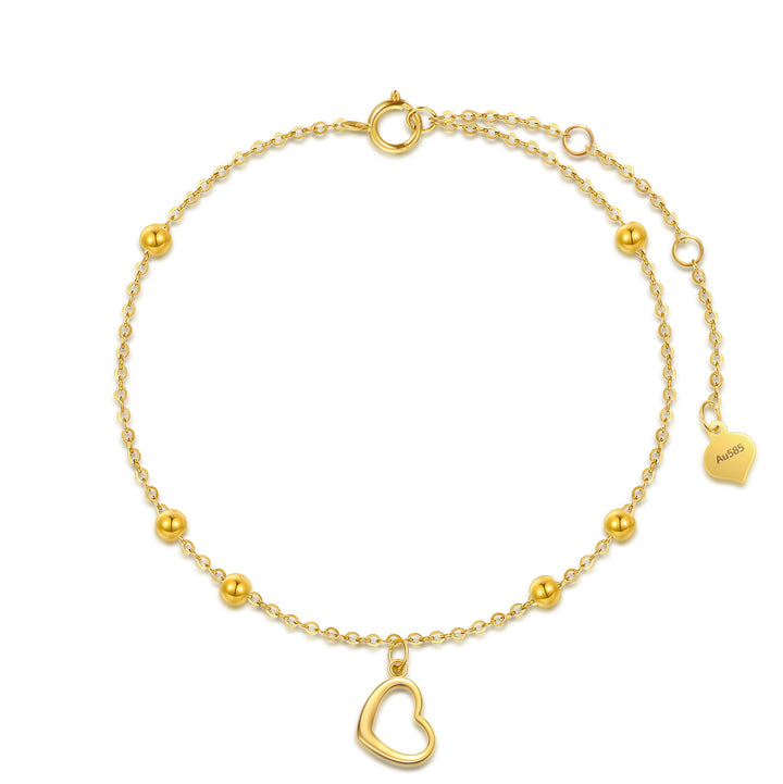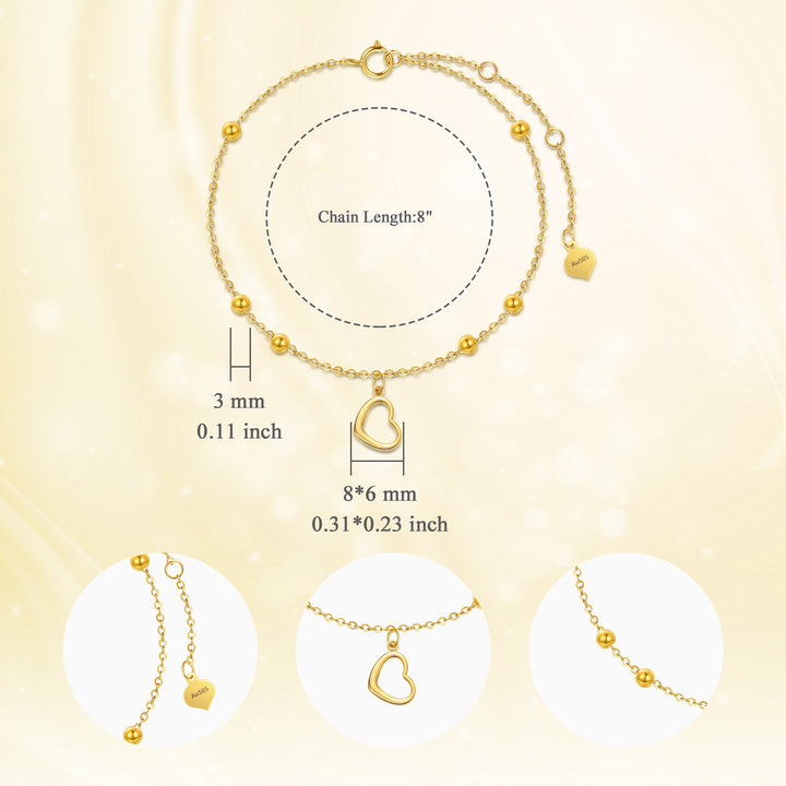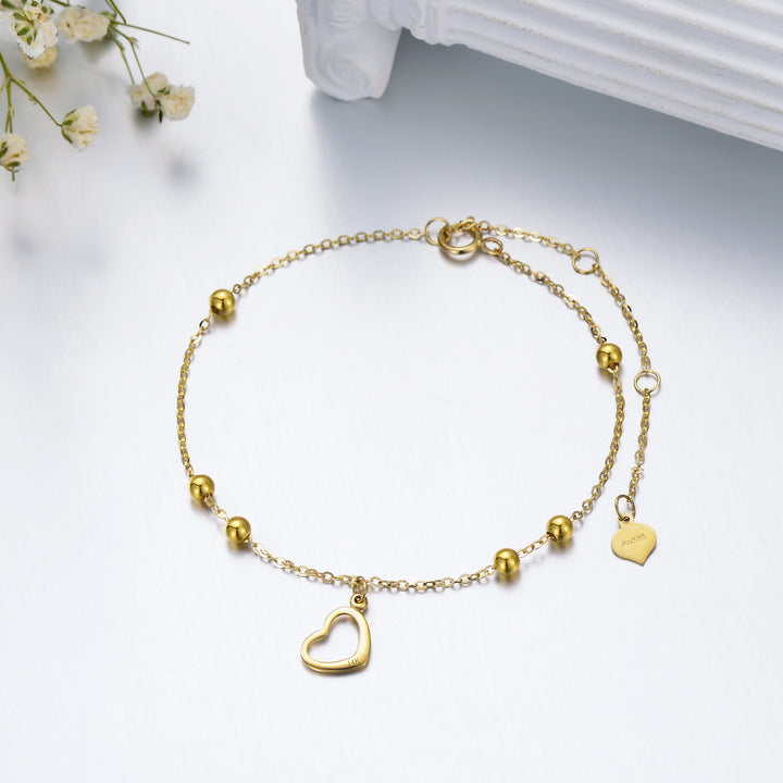 This 14K Gold Bead & Heart Bracelet for Women by YFN is a stone-free, versatile accessory for every woman. This stunning 14K Gold Charm Bracelet, featuring a charming heart bead, offers a sleek, minimalist design without the distraction of stones, perfect for adding a touch of luxury and sophistication to both casual and formal outfits.