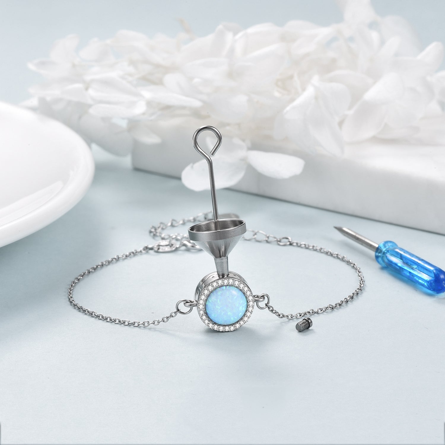 Sterling Silver Opal Bead Urn Bracelet for Ashes
