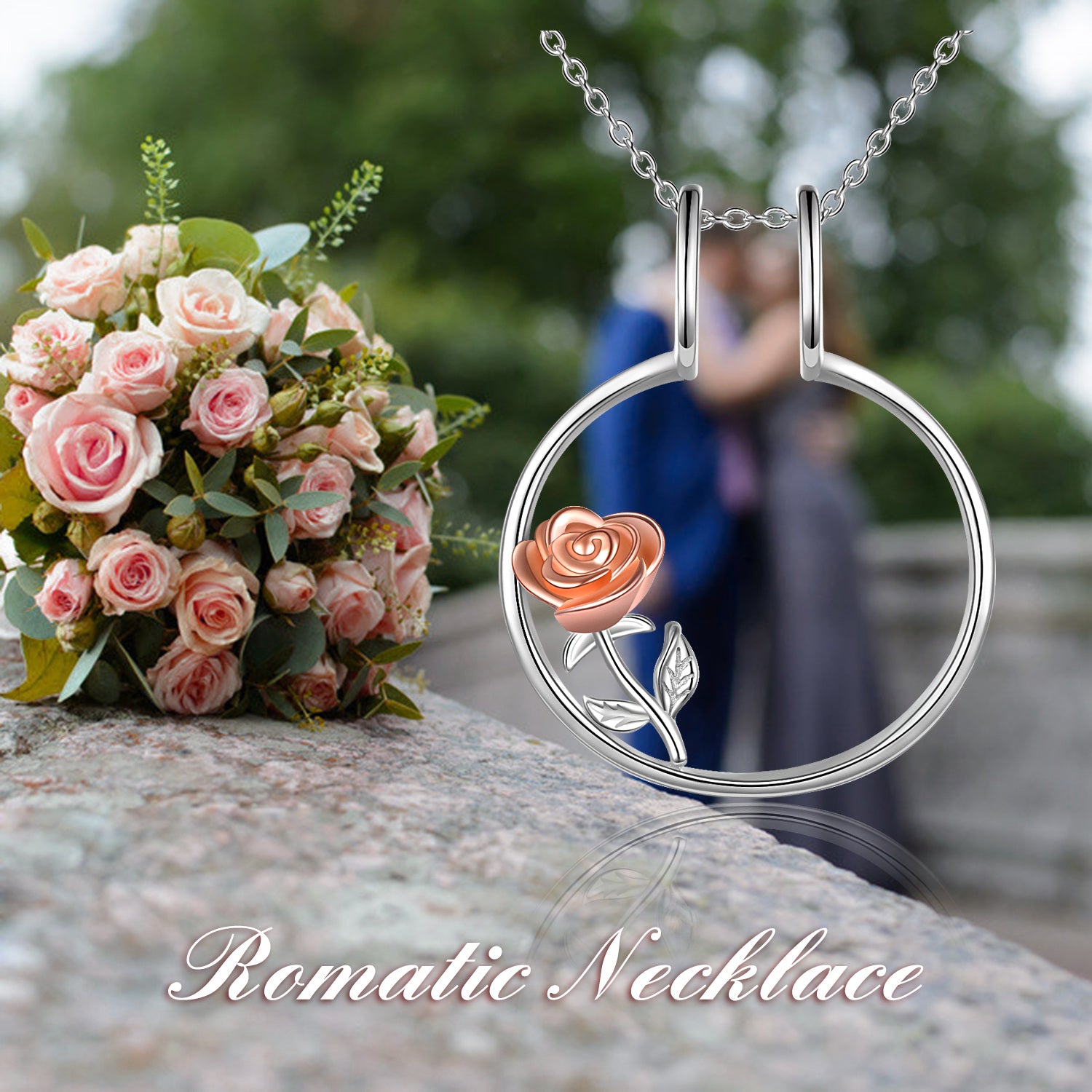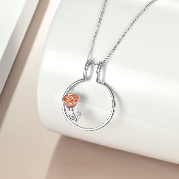 Sterling Silver Two-tone Rose & Ring Holder Pendant Necklace