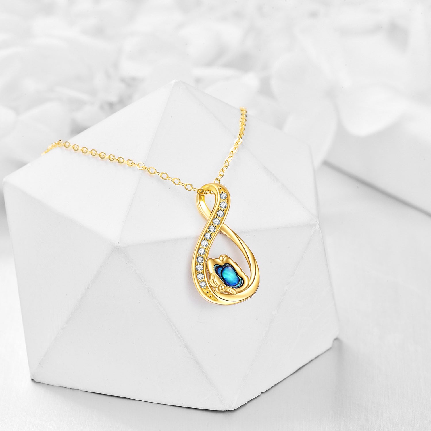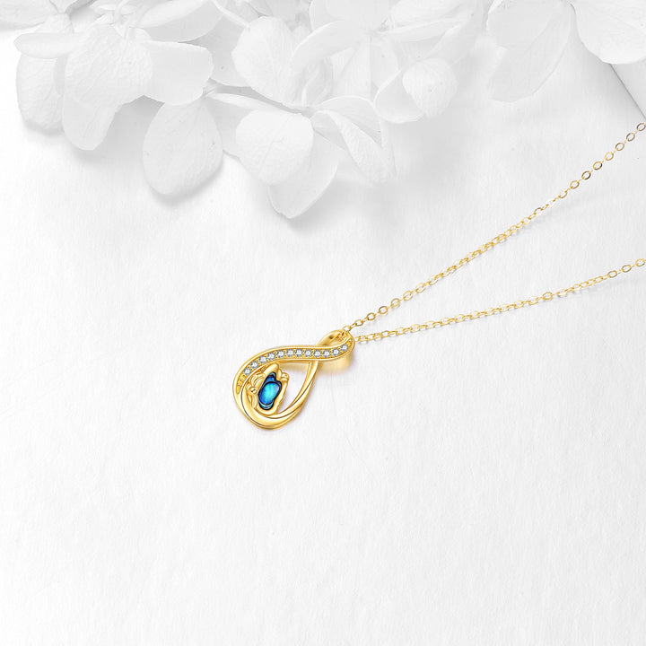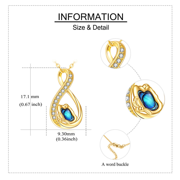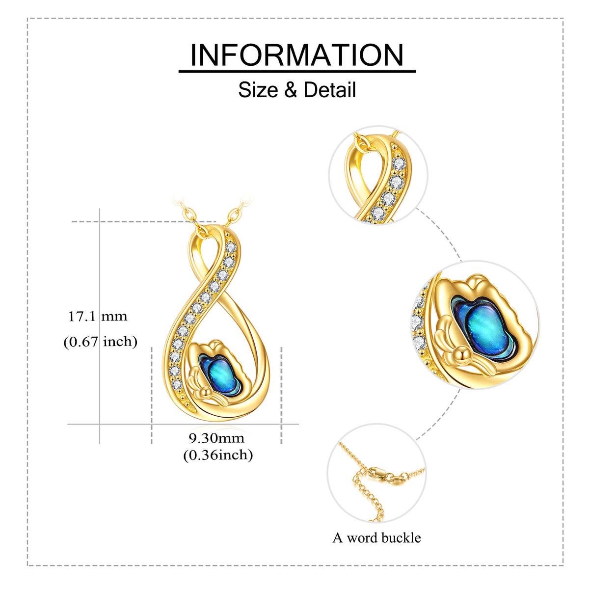 This 14K Yellow Gold Abalone Shellfish Butterfly Infinity Symbol Pendant Necklace For Women by YFN is a stunning and meaningful piece for women. Combining 14K gold with the mesmerizing iridescence of blue abalone shellfish, this pendant is adorned with brilliant Cubic Zirconia accents and designed in a butterfly shape intertwined with an infinity symbol, symbolizing everlasting love.