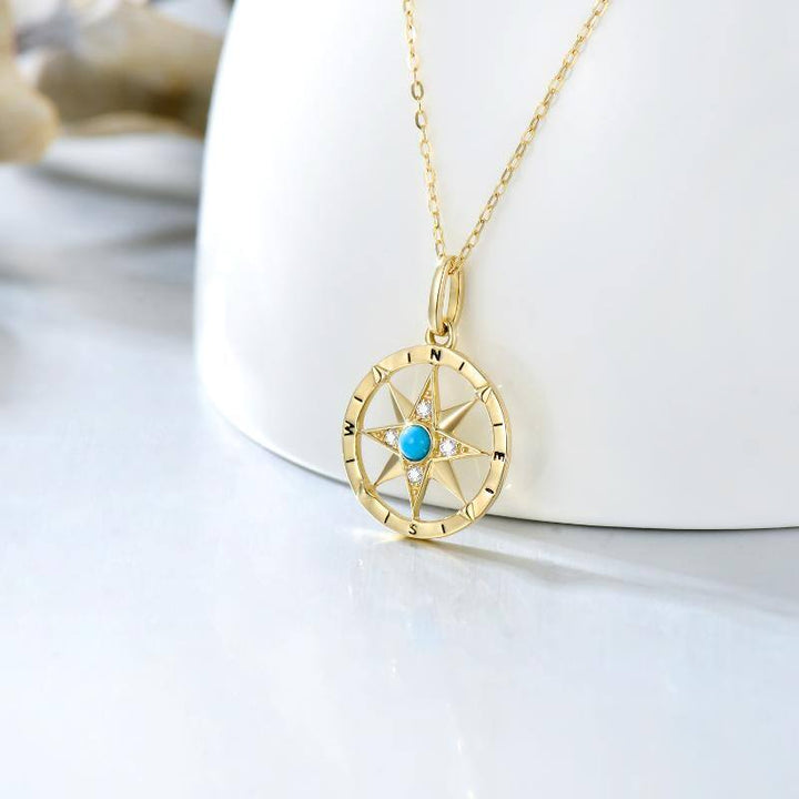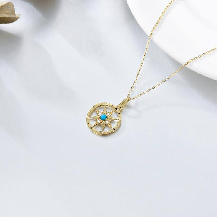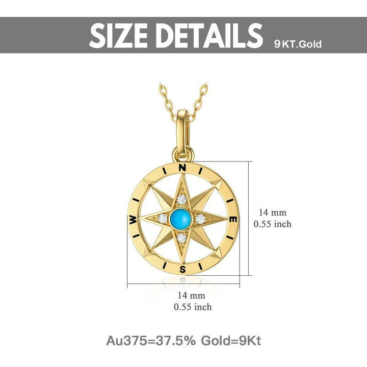 This Women's Pendant Necklace is crafted from 9K Gold, featuring a Turquoise Stone Set within a Compass Design.