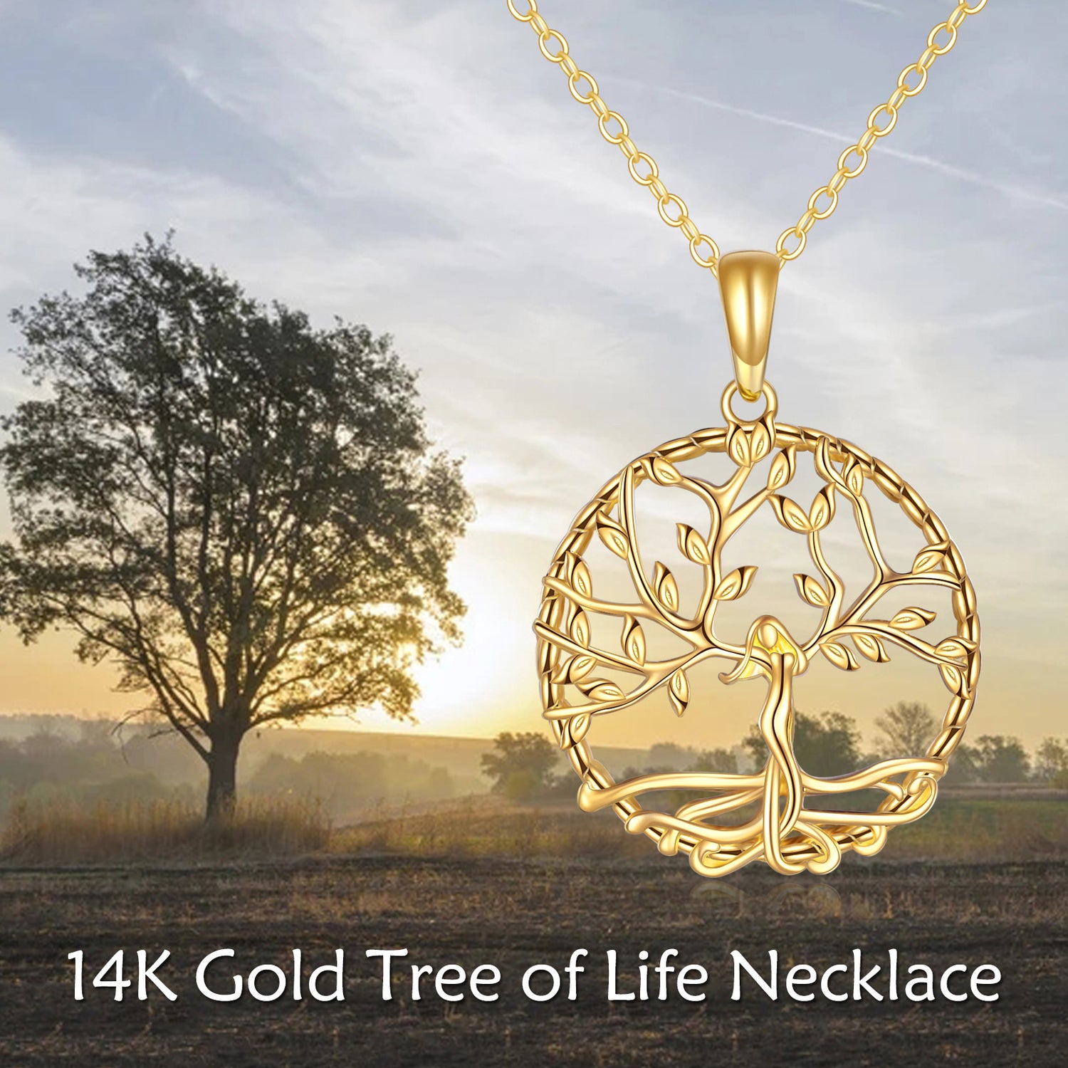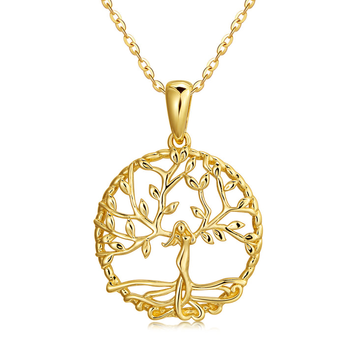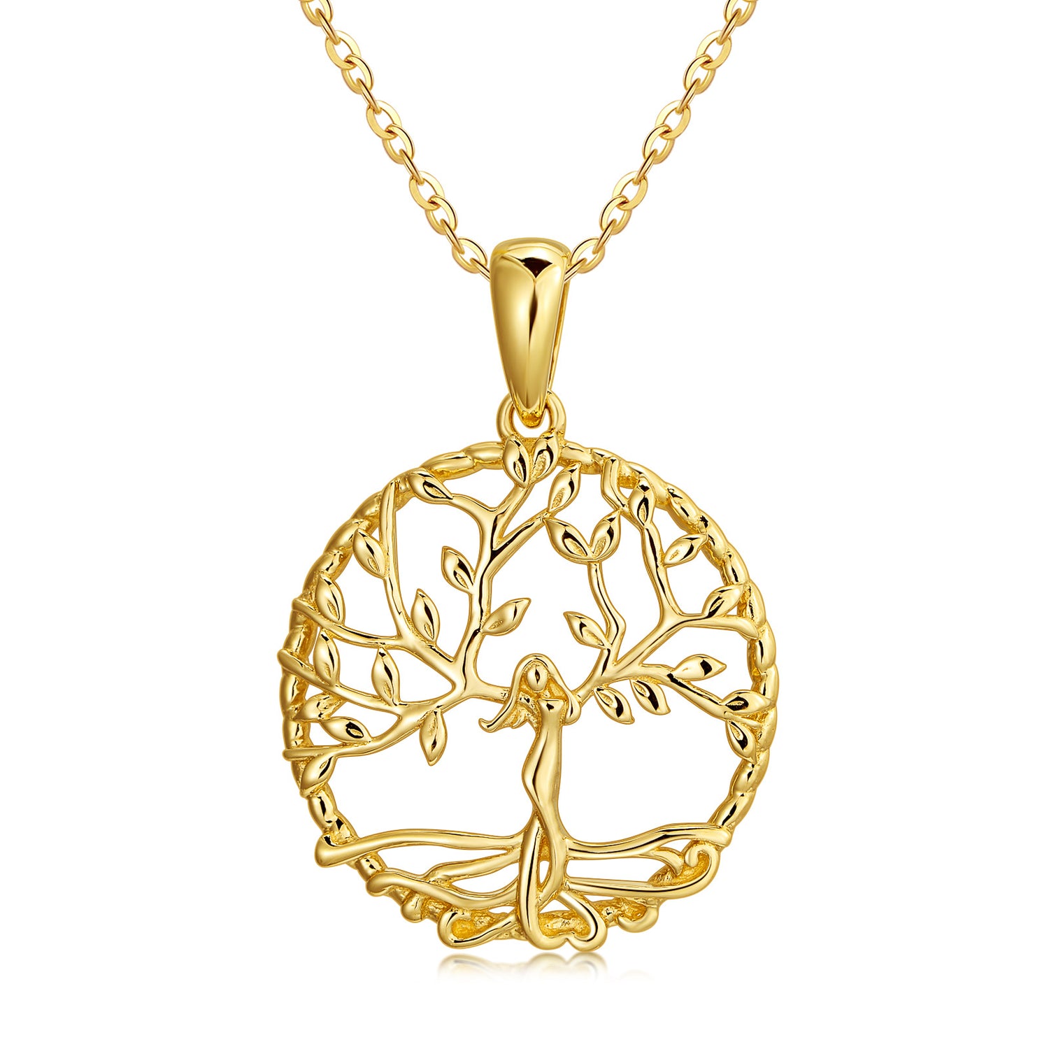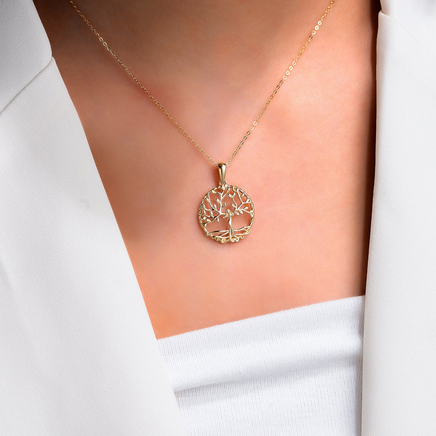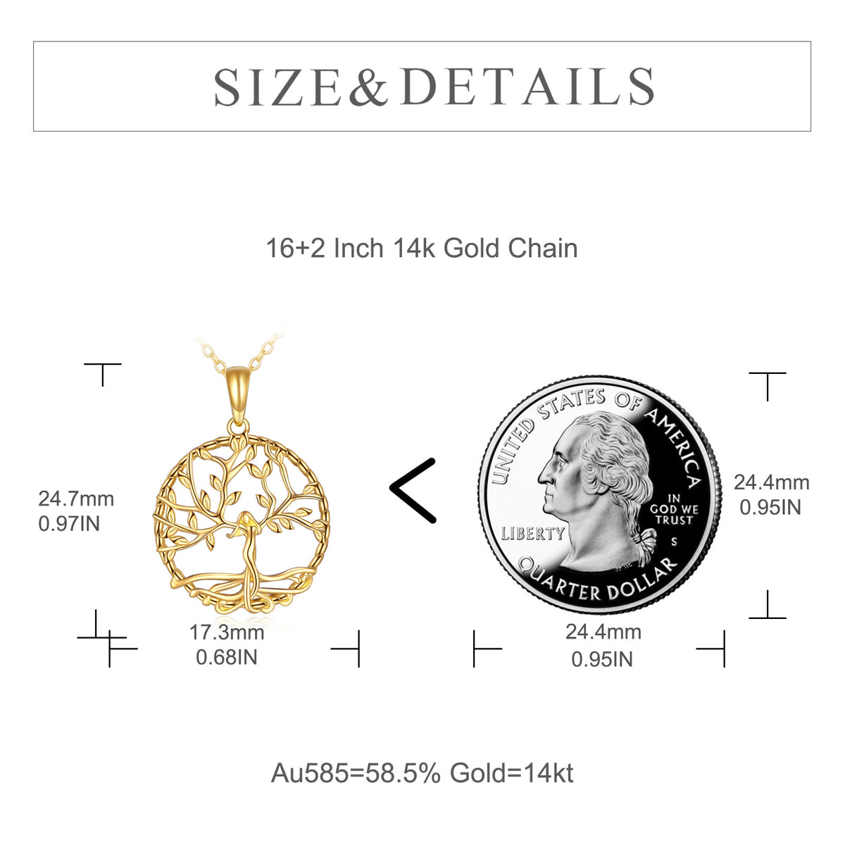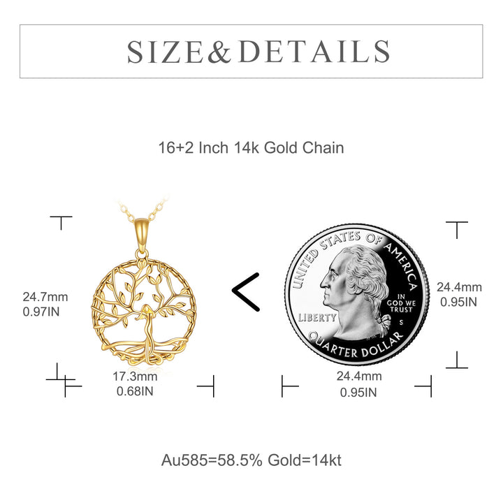 14K Gold Tree Of Life Pendant Necklace with Cable Chain