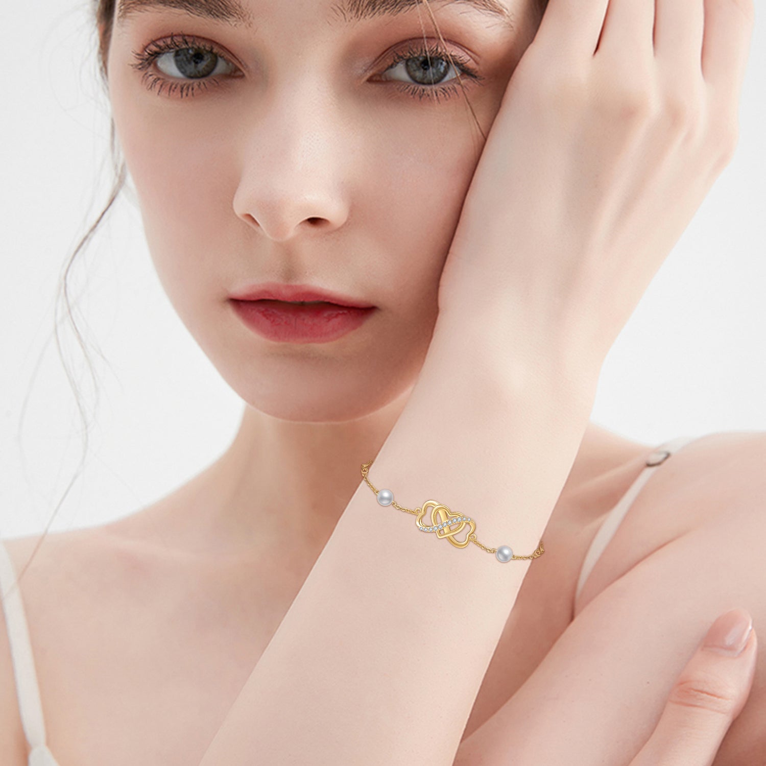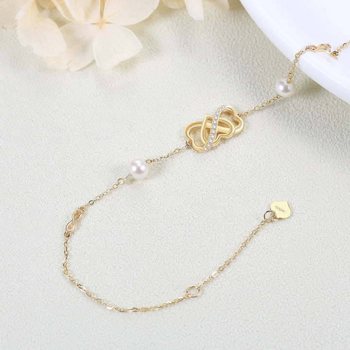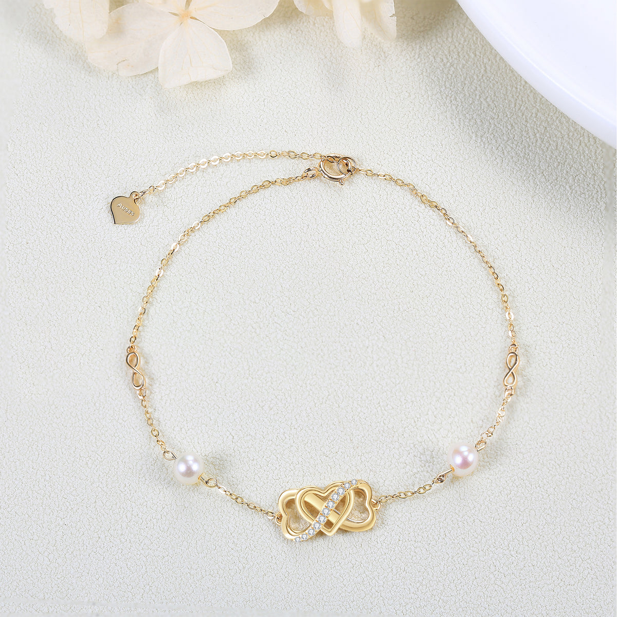 14K Gold Pearl Heart & Infinity Symbol Bracelet for Women