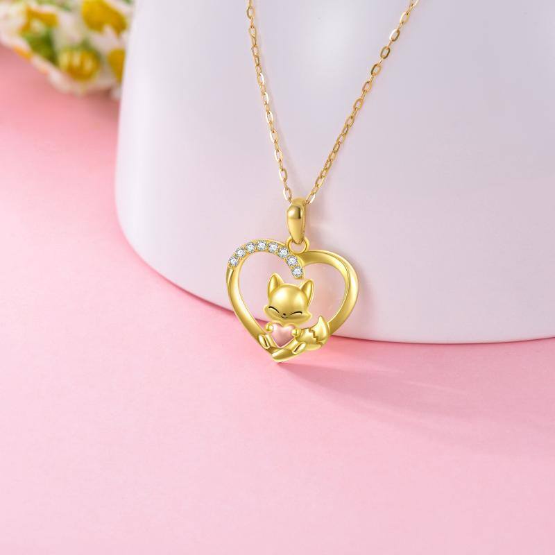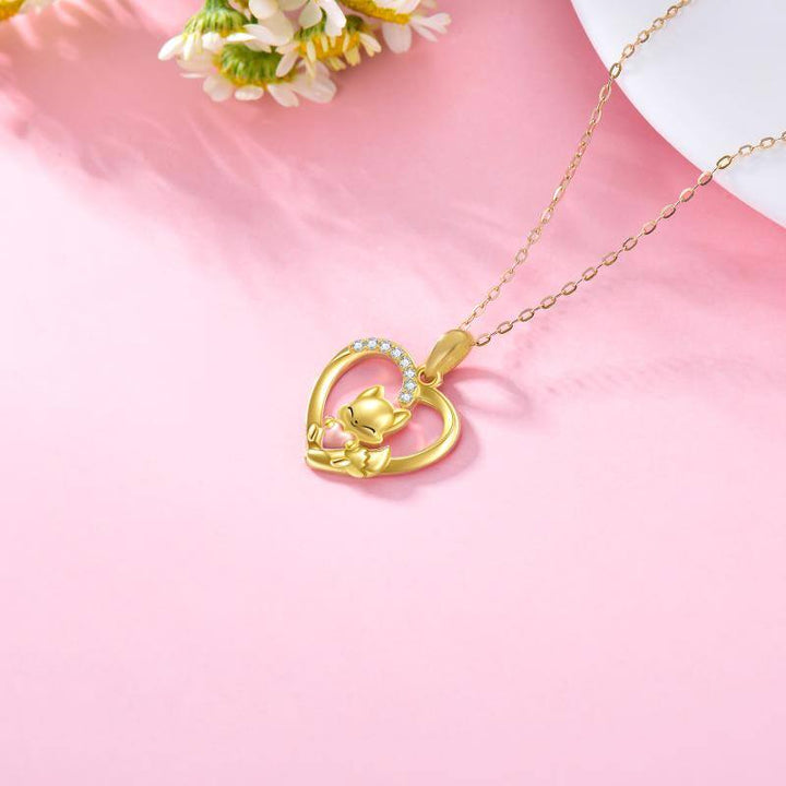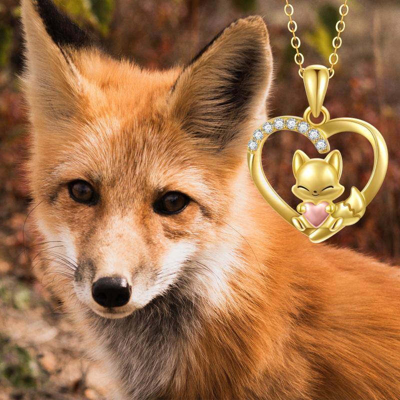 14K Gold & Rose Gold Cubic Zirconia Fox With Heart Pendant Necklace For Women Best Friends