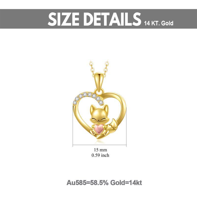 This Pendant Necklace is crafted from 14K Gold and available in Gold and Rose Gold tones, featuring a Fox Design embellished with Cubic Zirconia stones and a Heart Motif.