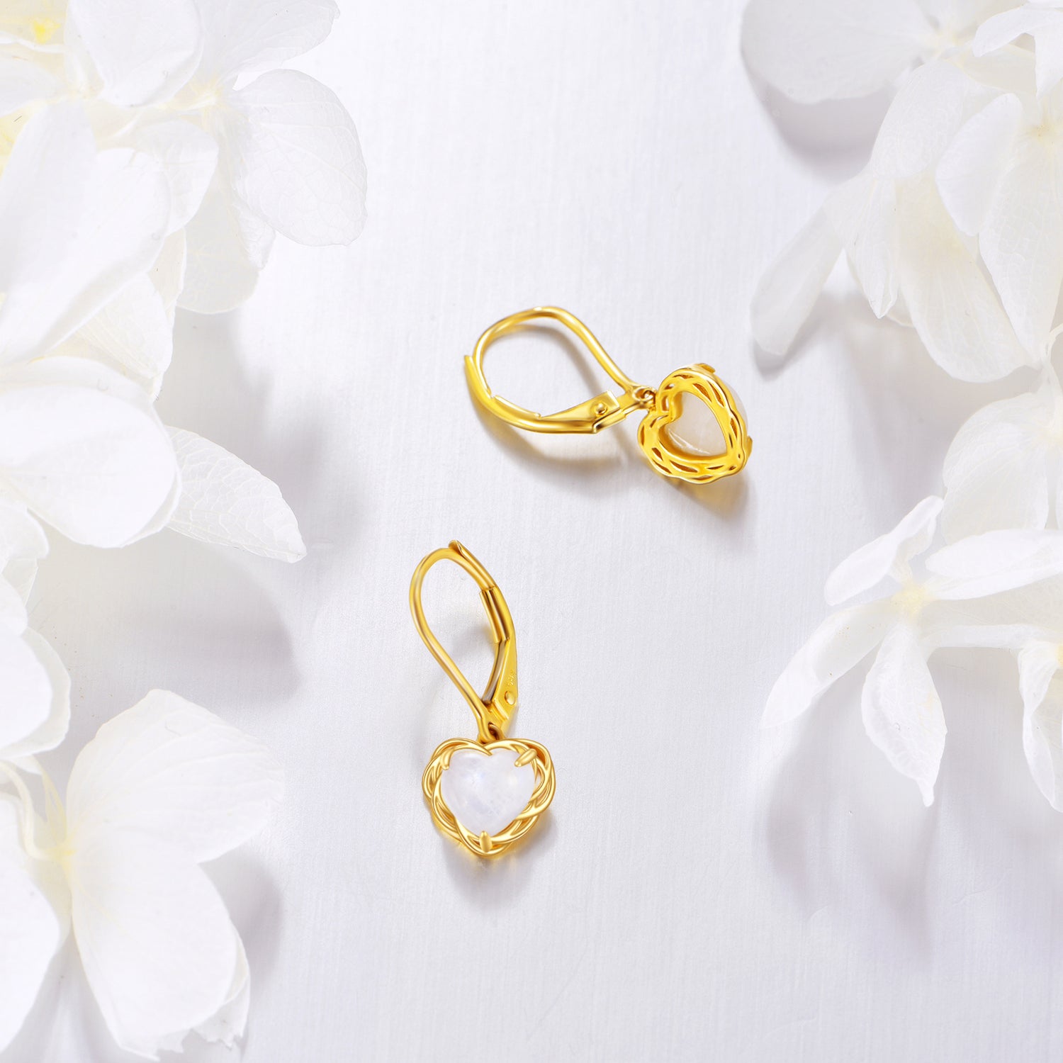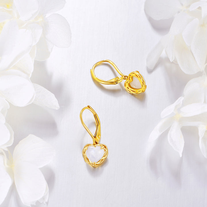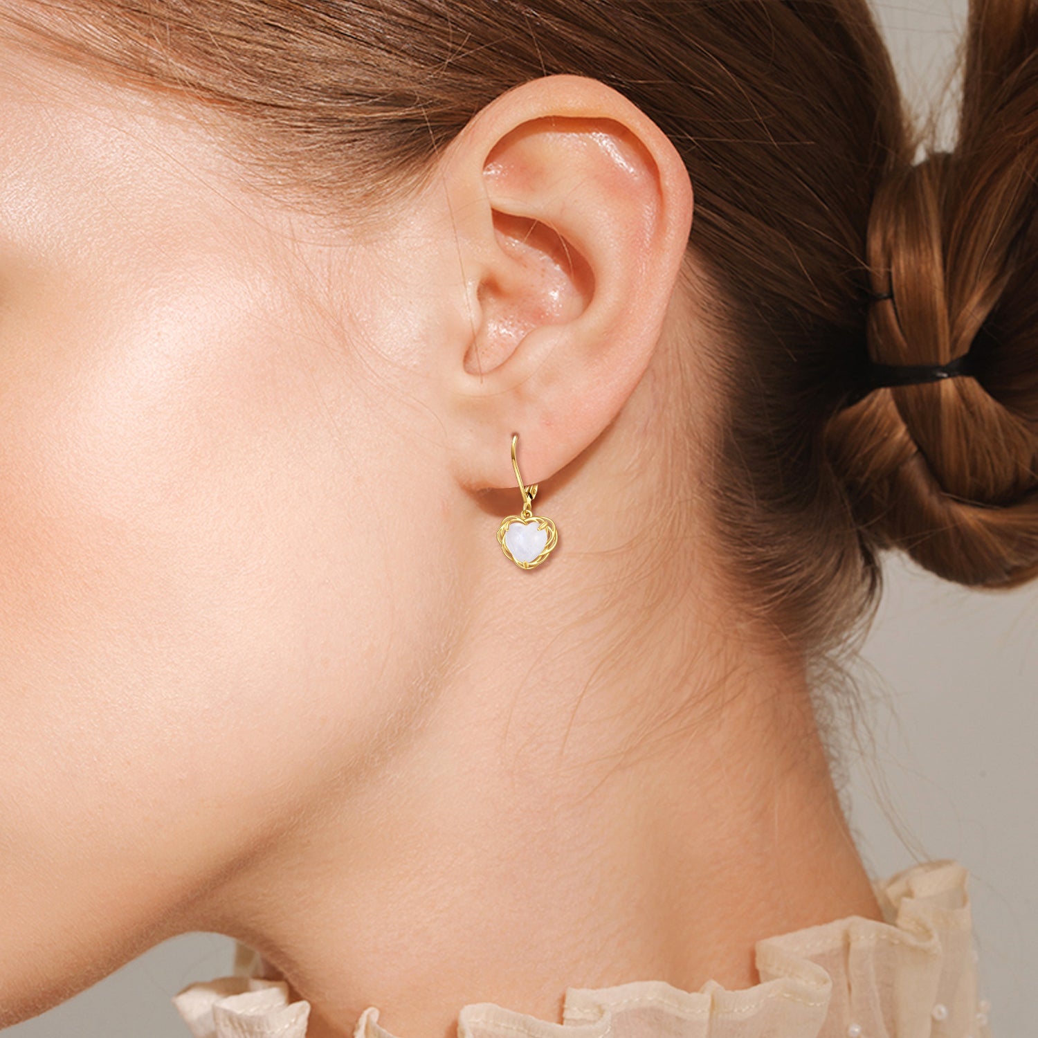 These 14K Gold Moonstone Heart Drop Earrings by YFN are stunning, luxurious earrings for women who love to shine. Crafted from exquisite 14K Gold, they feature pristine white heart-shaped moonstones, glistening with an ethereal glow. Combining timeless elegance and modern charm, these drop earrings offer a sophisticated look that beautifully complements any outfit, providing lasting beauty and making them a versatile and thoughtful addition to a jewelry collection.