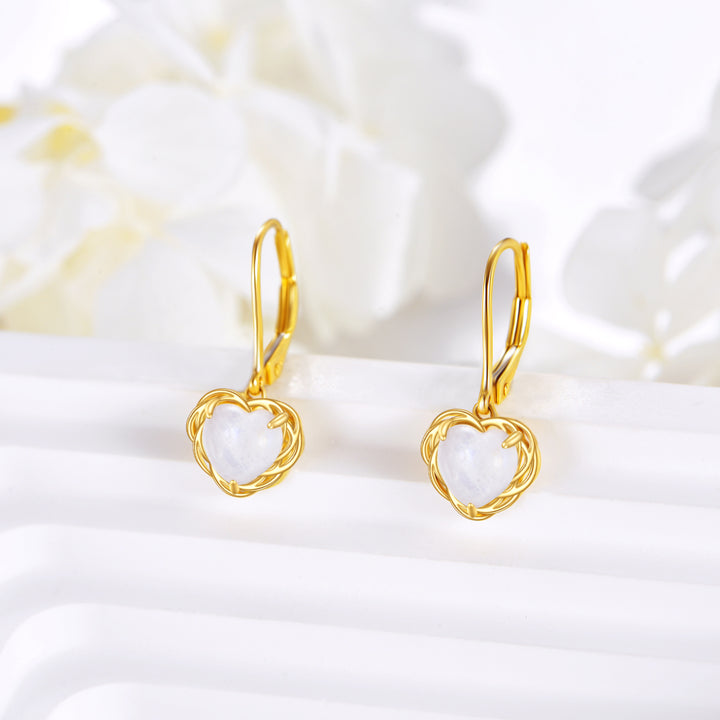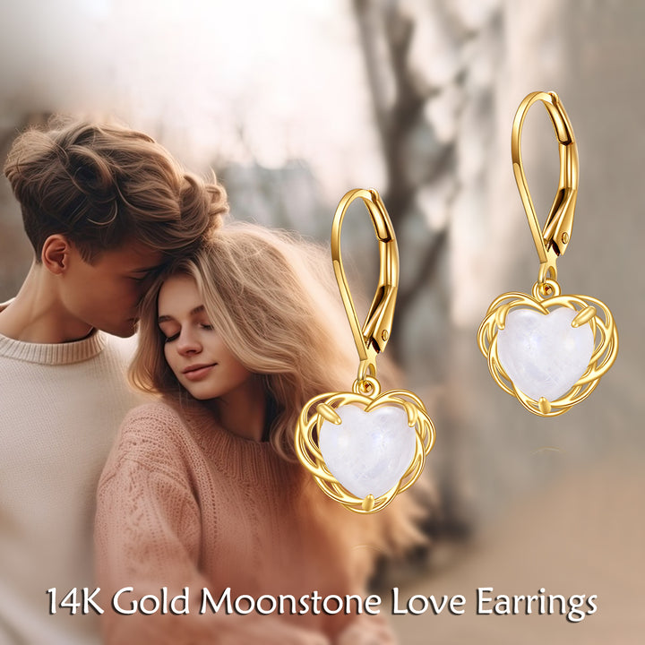 Crafted from solid 14K Gold. These are Drop Earrings featuring Heart-Shaped Moonstone stones.