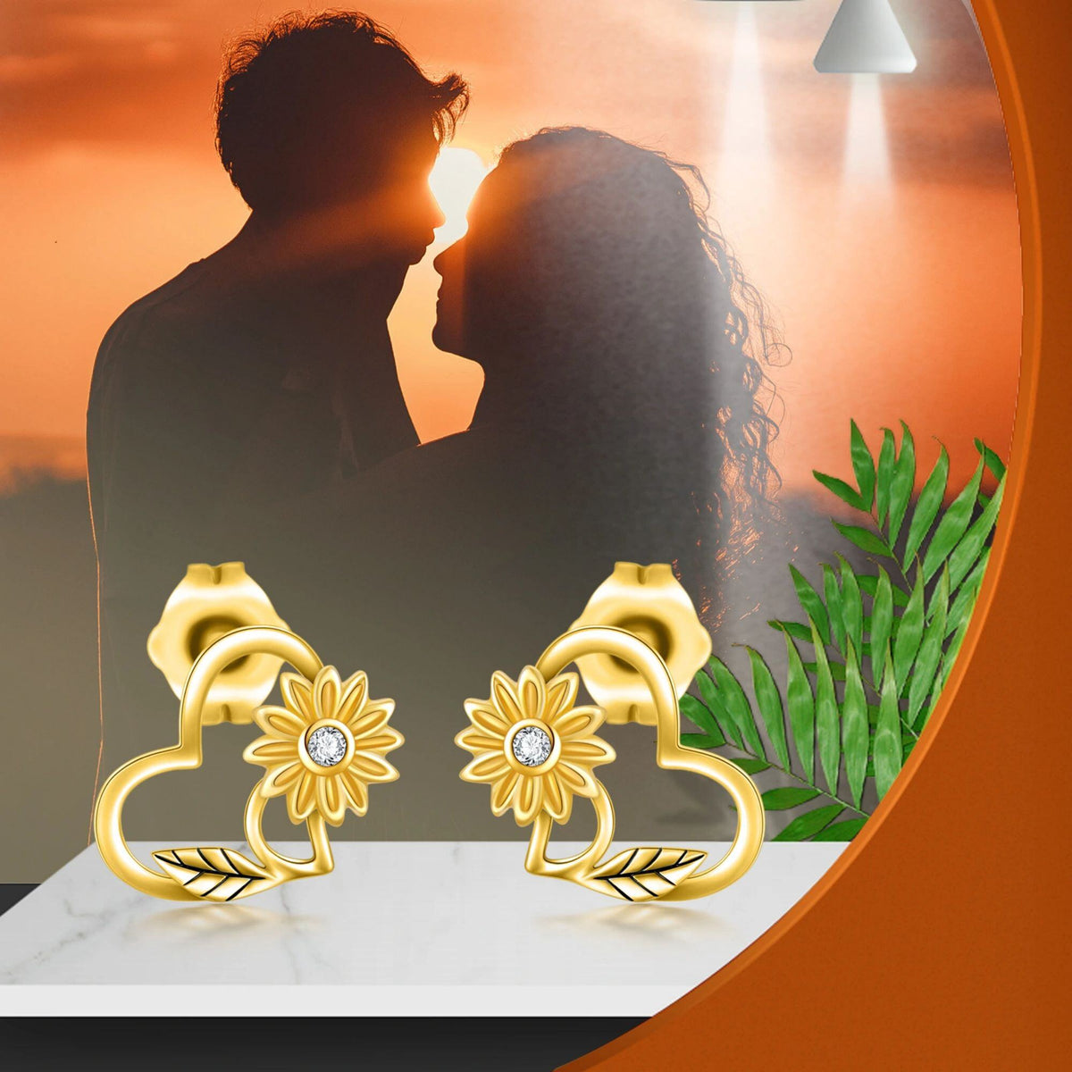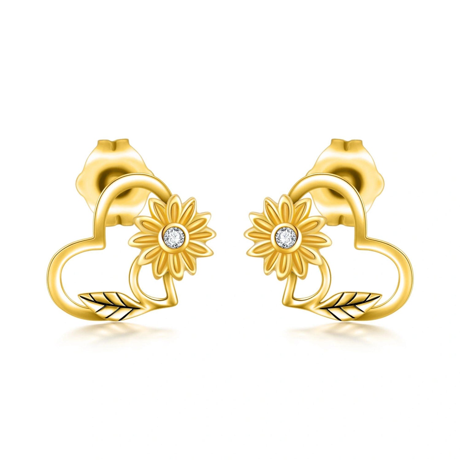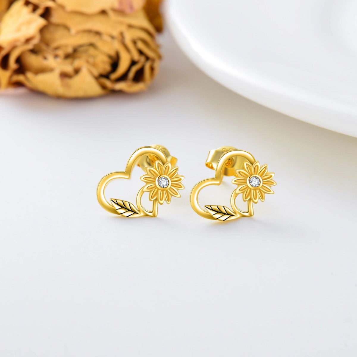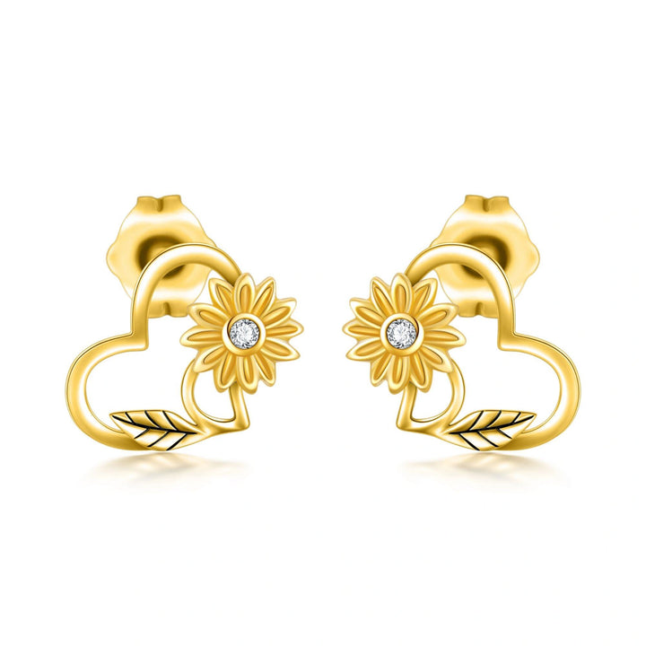 14K Gold Sunflower Stud Earrings