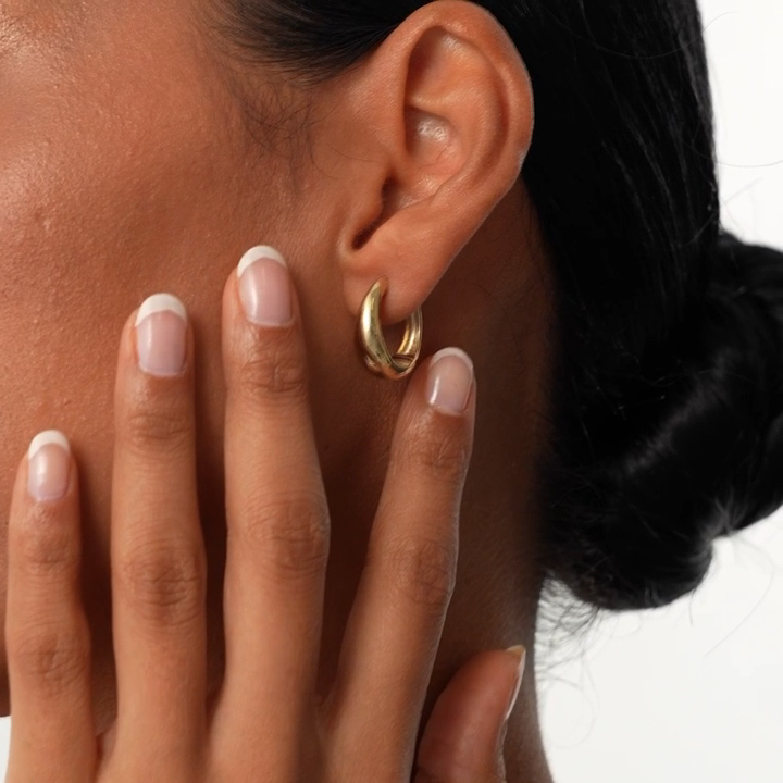 Crafted in sterling silver with yellow gold plating. Stone-free hoop design with secure closure.