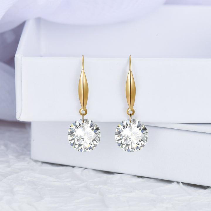 18K Gold Circular Shaped Cubic Zirconia Drop Earrings