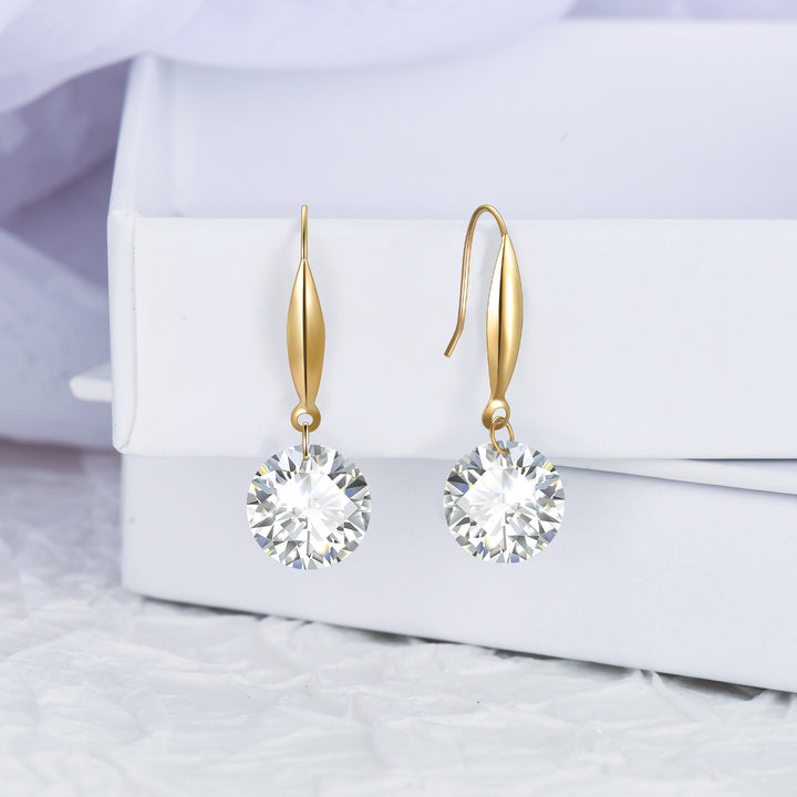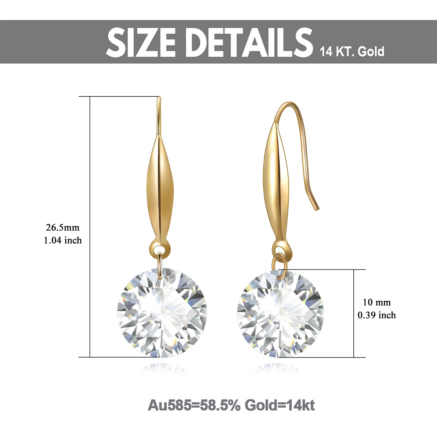 18K gold; cubic zirconia; circular drop earring design; gold earring hooks.