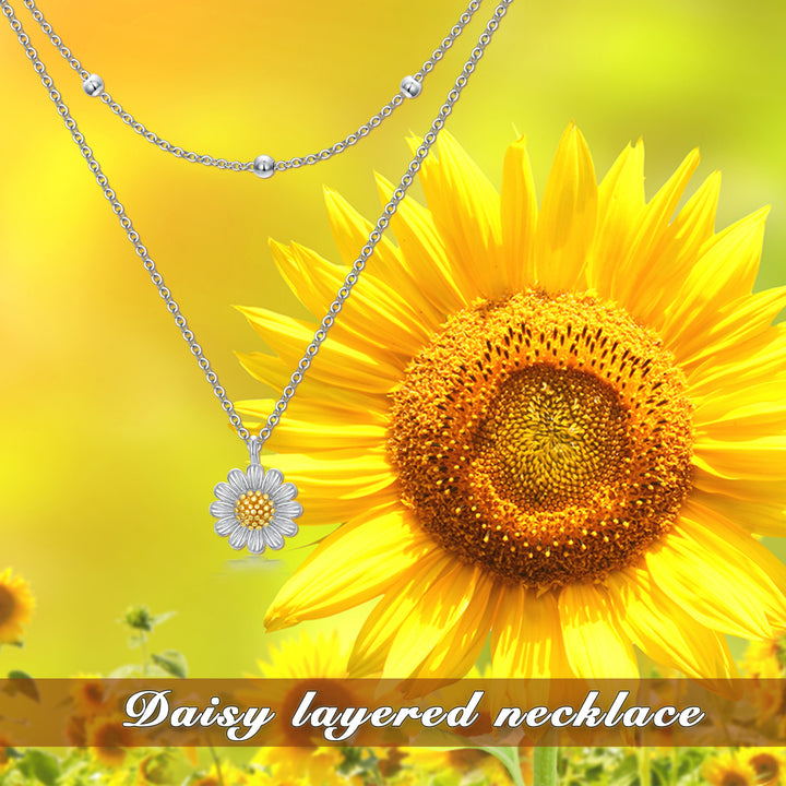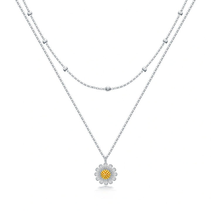 Sterling Silver Two-tone Sunflower Layered Necklace for Women