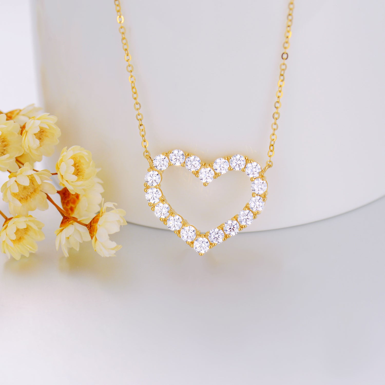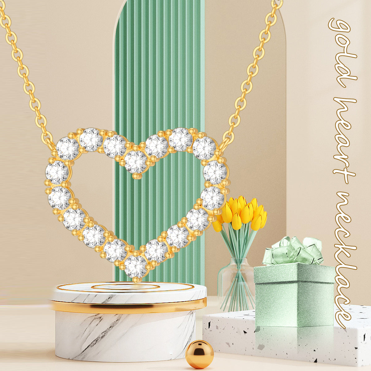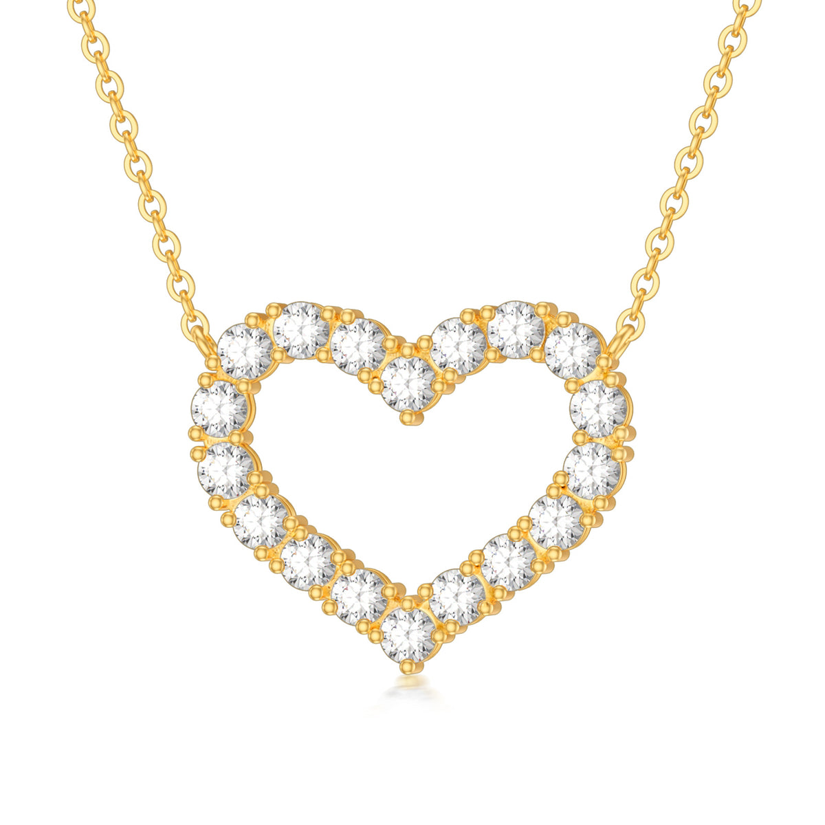 This pendant necklace is crafted from Solid 14K Gold (Yellow Gold) and features a heart-shaped design set with a sparkling Cubic Zirconia stone.