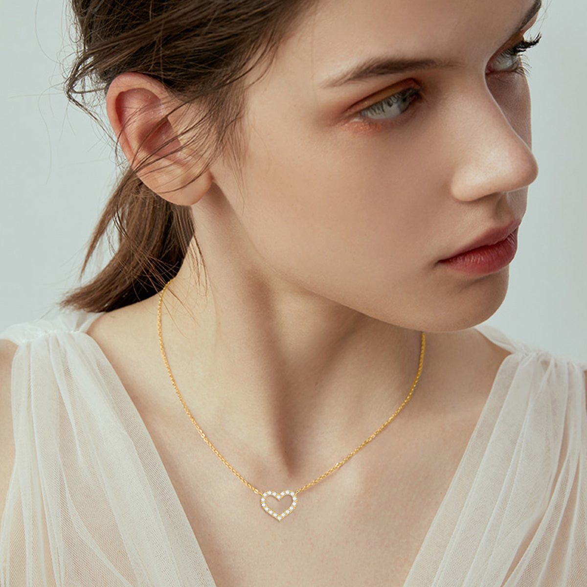 This 14K Gold Cubic Zirconia Heart Pendant Necklace by YFN is a delicate, elegant piece designed to add a touch of luxury to any outfit. Delicately fashioned from high-quality 14K gold, the pendant showcases a heart-shaped design elegantly adorned with a sparkling cubic zirconia stone. This stunning centerpiece captures the light from every angle, radiating brilliance and charm. It is an ideal gift for any special occasion or a timeless, sophisticated addition to a woman's jewelry collection.