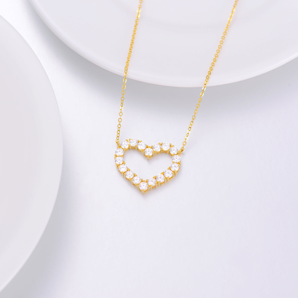 14K Gold Cubic Zirconia Heart Pendant Necklace