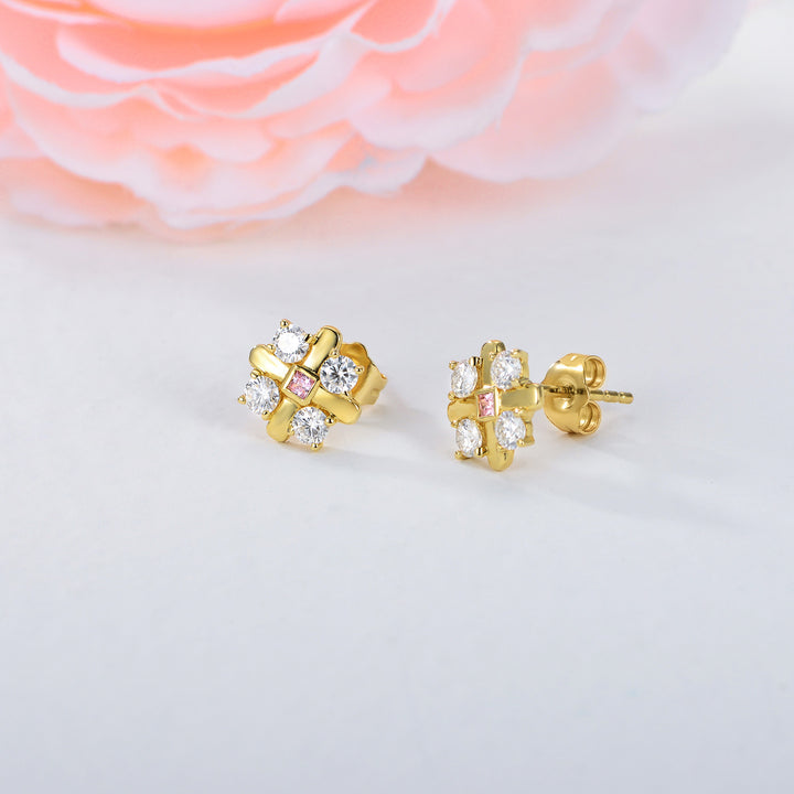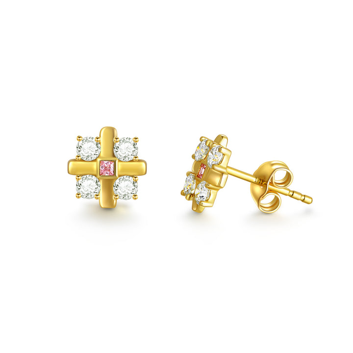 14K Gold Moissanite Cross Stud Earrings
