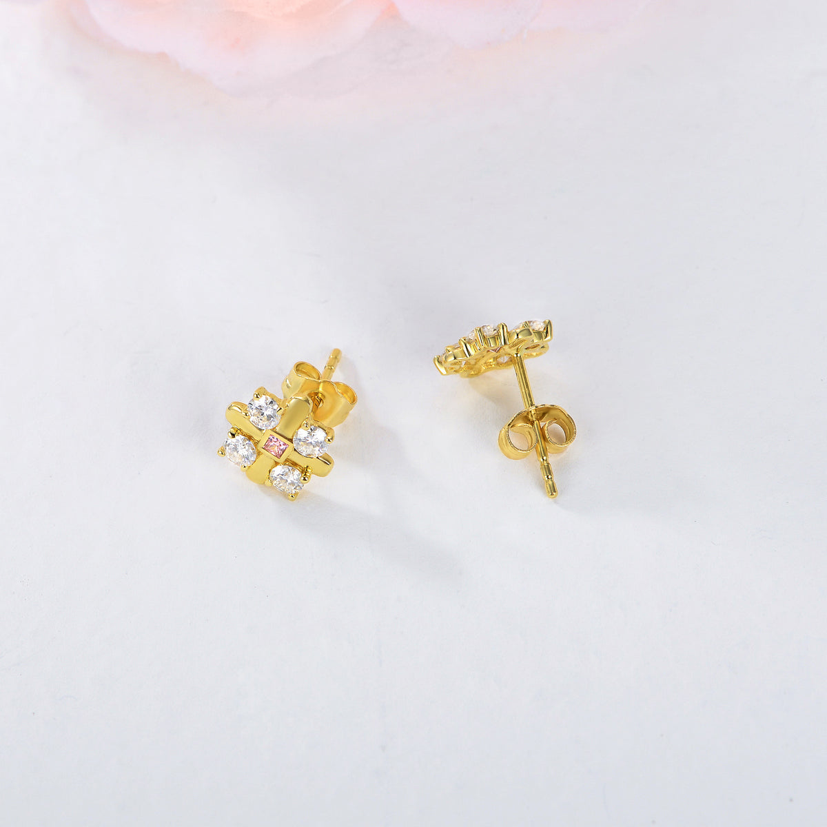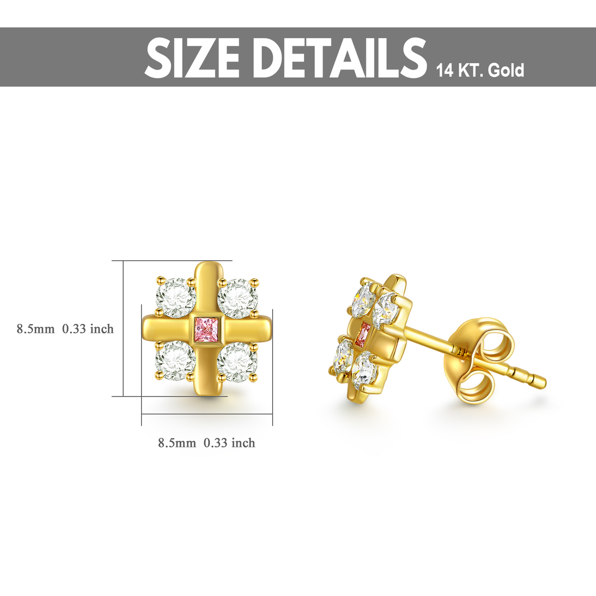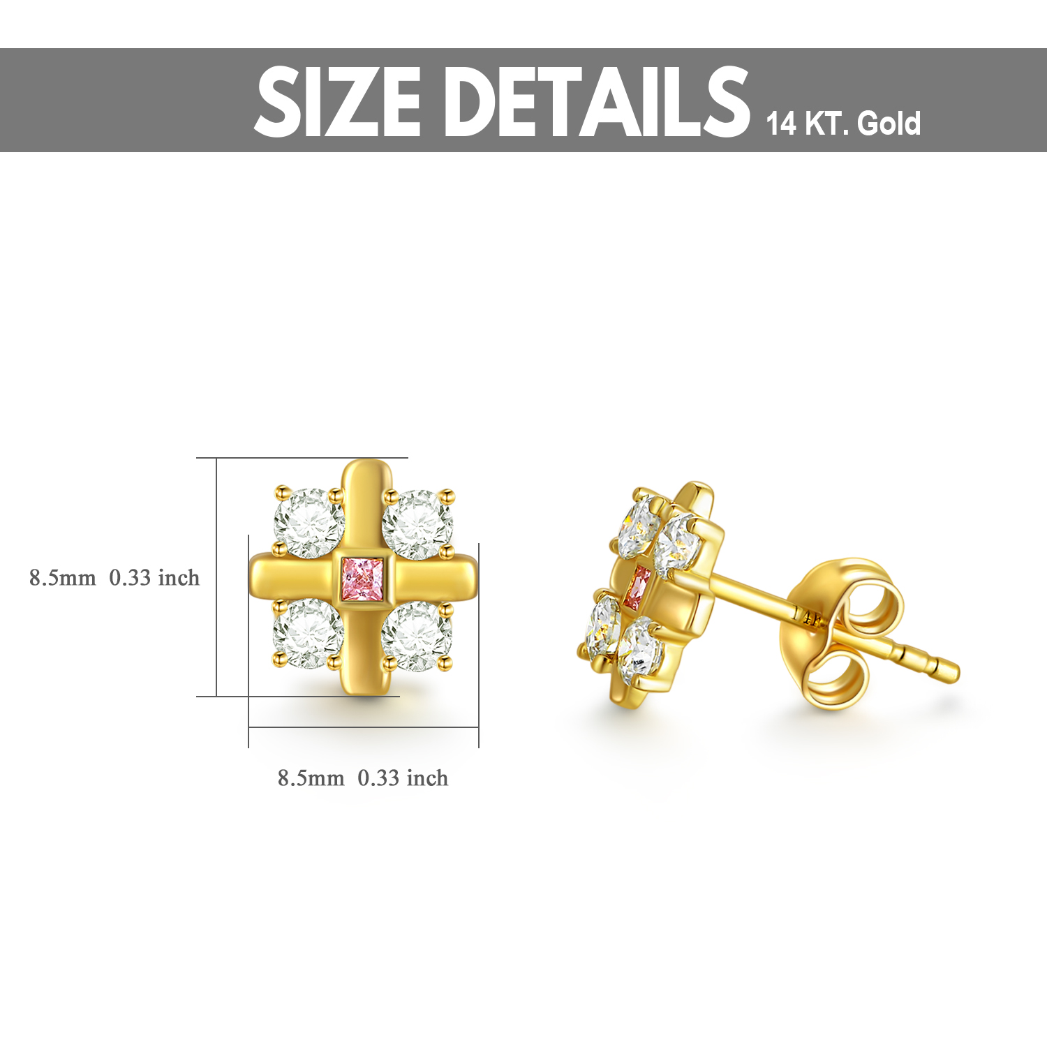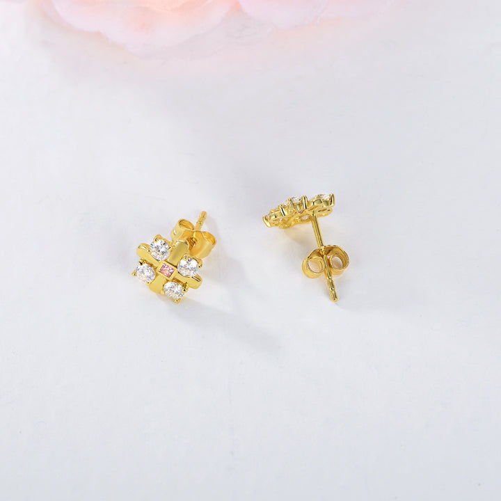 These Cross Stud Earrings are crafted from Luxurious 14K Gold, Featuring Brilliant Moissanite Stones in a Delicate Cross Design.