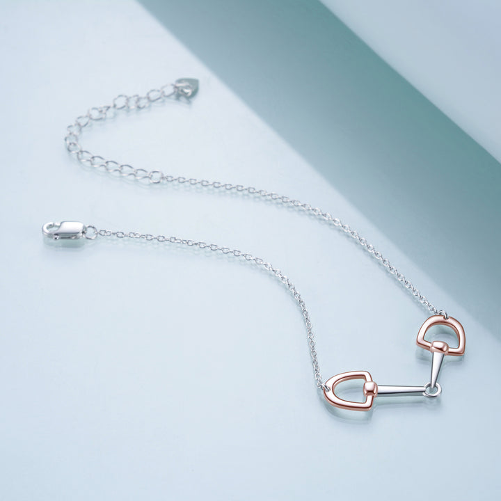 This Sterling Silver Two-tone Horseshoe Charm Bracelet by YFN blends silver and rose gold tones to create a charming good-luck talisman. The horseshoe motif symbolizes fortune, while the minimalist, stone-free design ensures versatile styling.