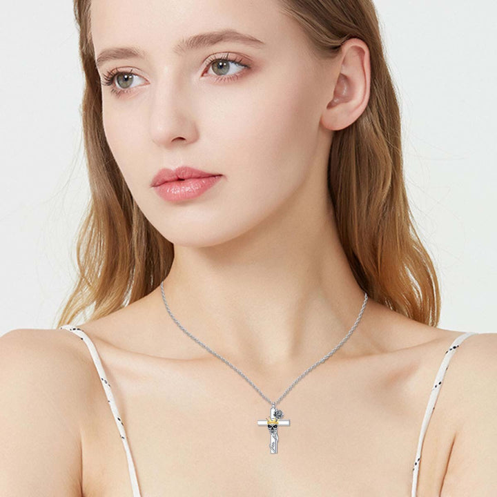 Sterling Silver Two-Tone Rose With Cross With Crown With Skull Urn Necklace For Ashes For Women