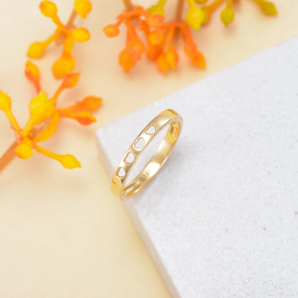 This 14K Gold Heart Ring with Engraved Word by YFN is a no-stone, elegant heart ring for women, symbolizing love and affection. Crafted from 14K Gold, the heart design is engraved with "I Love You," solidifying it as a cherished keepsake.