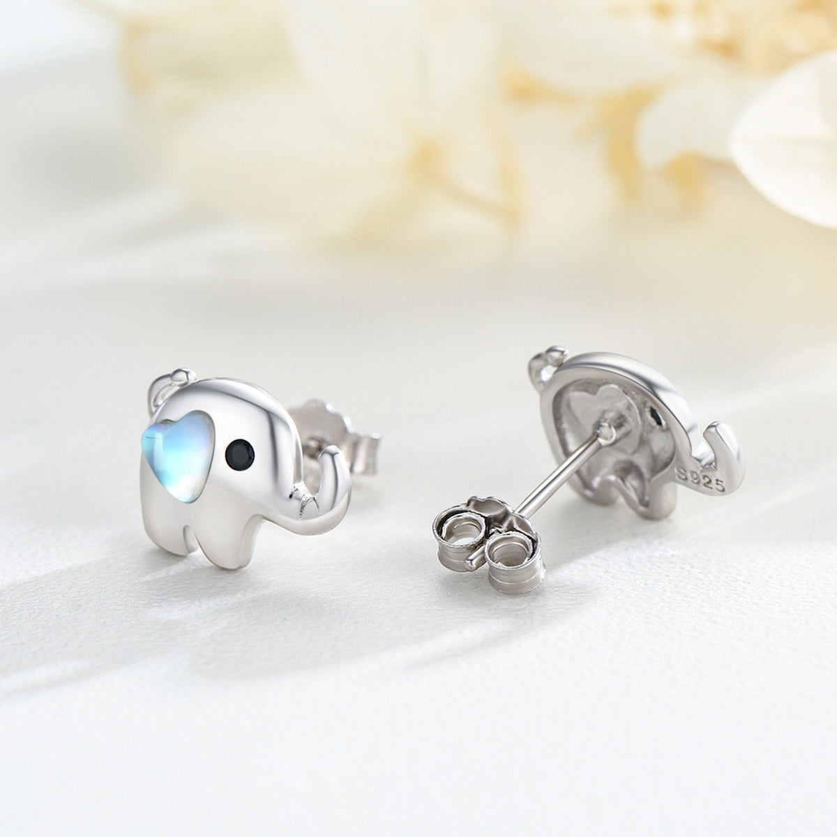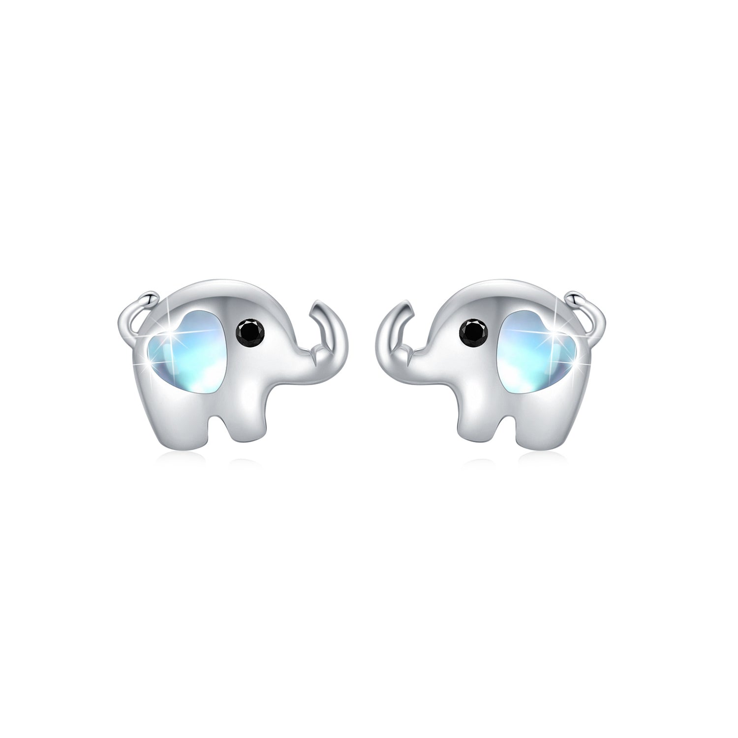 Sterling Silver Moonstone Elephant Stud Earrings