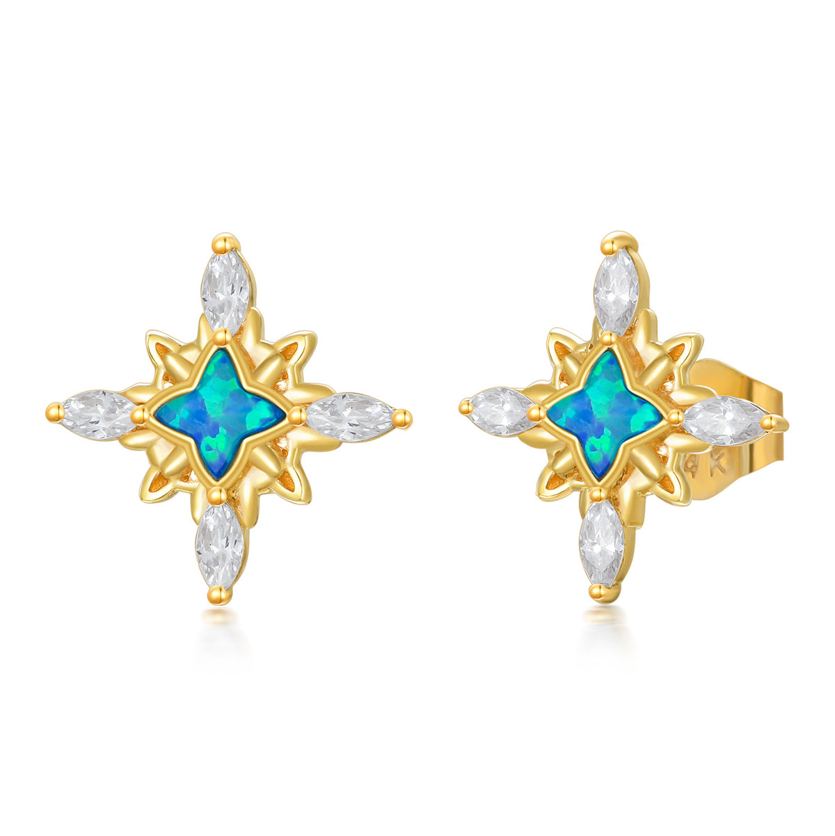 14K Gold Opal Stars Stud Earrings