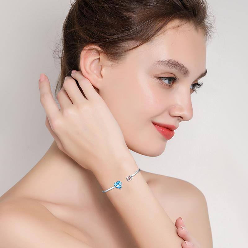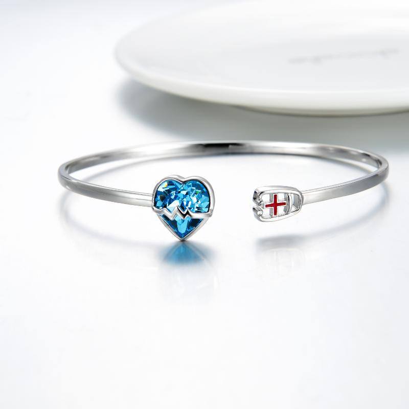 This Sterling Silver Heart Crystal with Stethoscope Pendant Bangle for Women by YFN blends heartfelt symbolism with elegant sparkle, making it an ideal gift for medical professionals or loved ones. The blue heart-shaped crystal radiates brilliance, representing compassion, dedication, and care. Paired with a stethoscope motif, the design honors those who devote themselves to healing. White gold plating enriches the sterling silver base with a polished, modern sheen, while the bangle structure adds a graceful touch. This meaningful accessory effortlessly elevates any outfit with its blend of sentiment, sophistication, and luminous charm.
