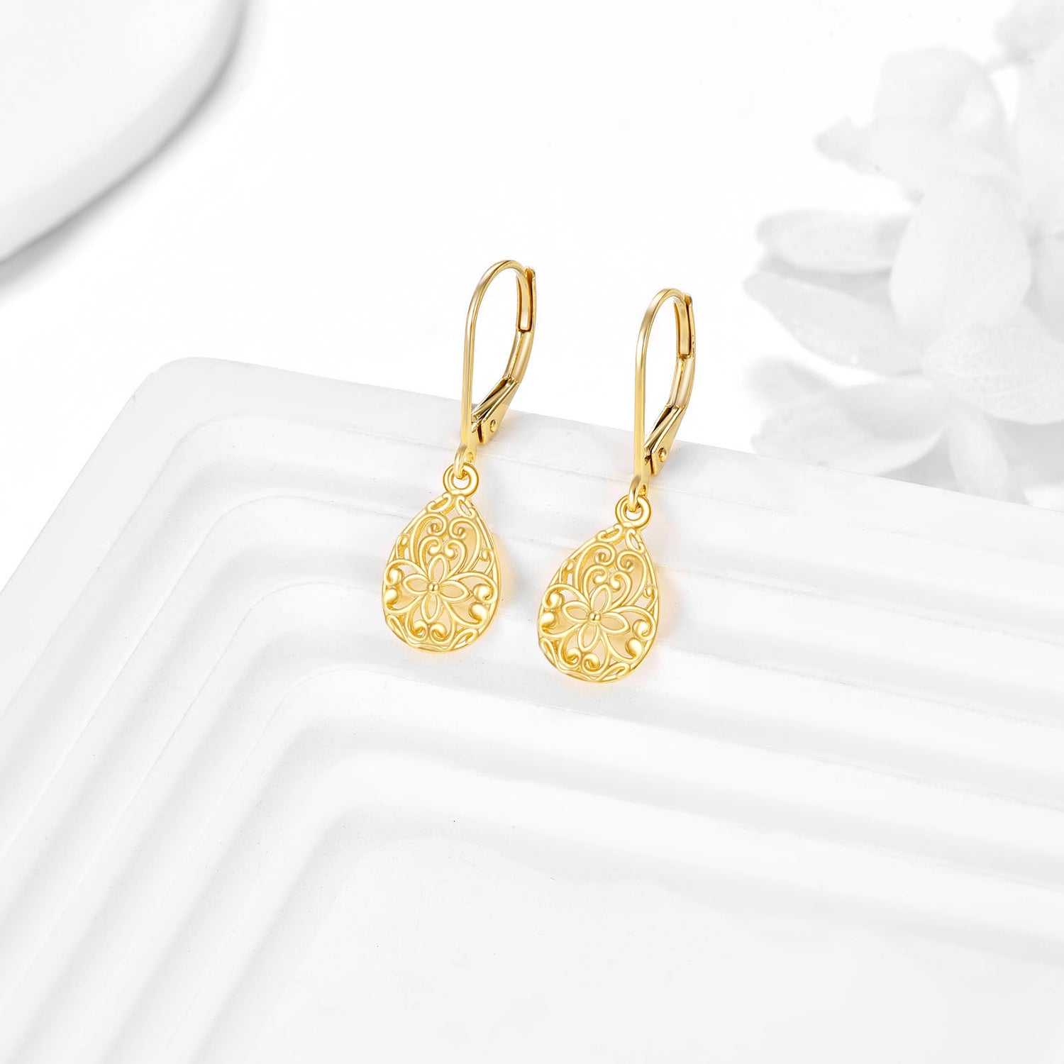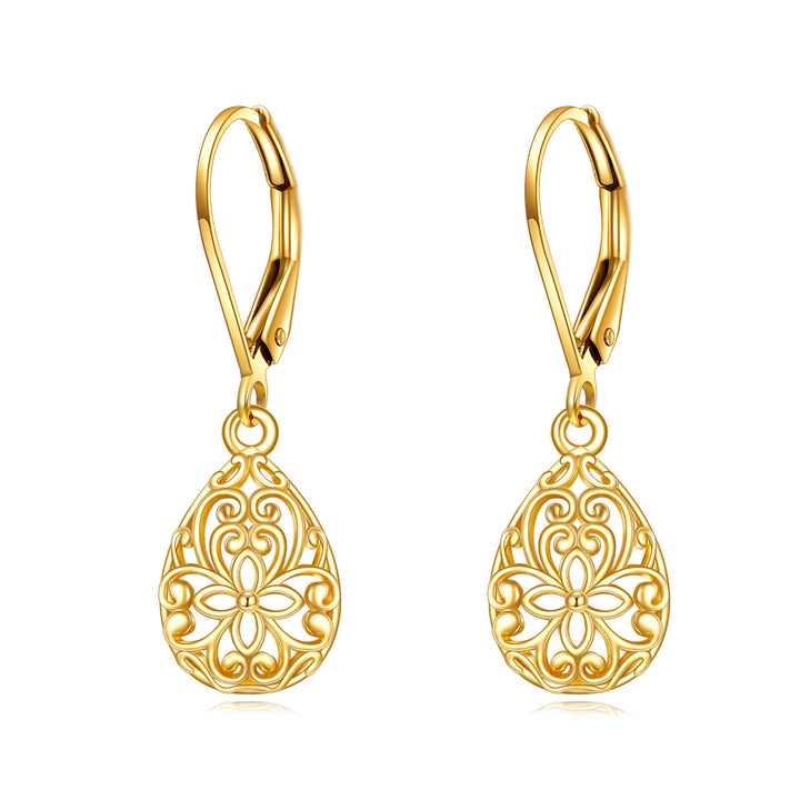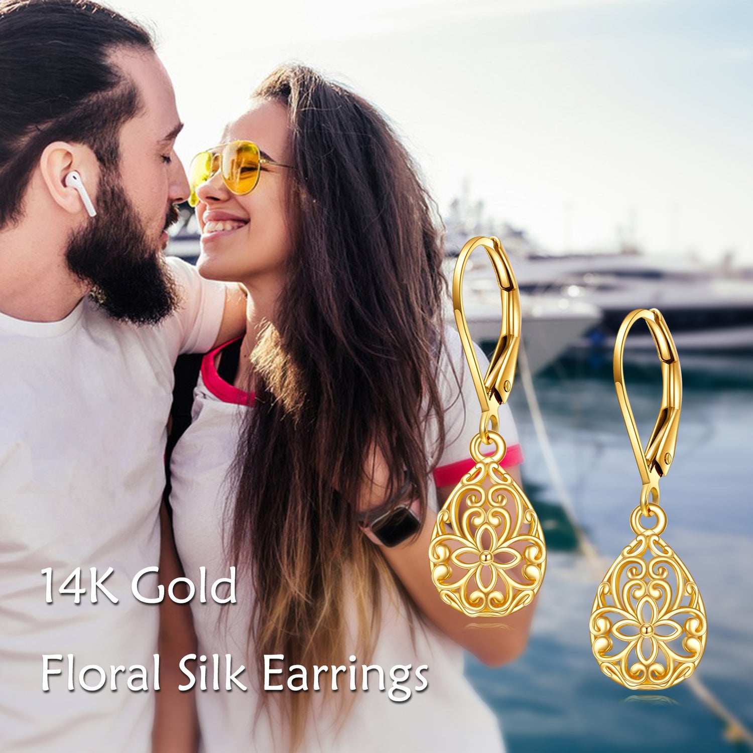 14K Gold Flowers Drop Lever-back Earrings for Women