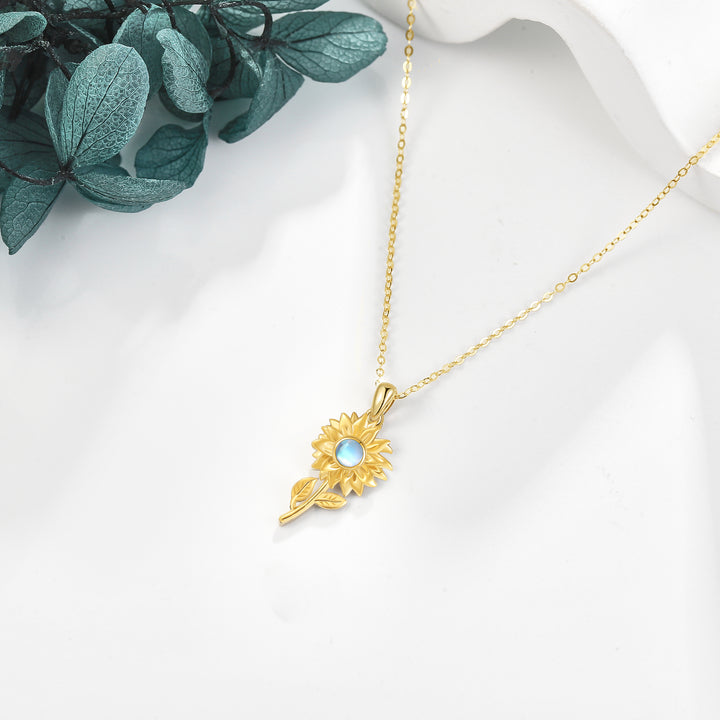 This 14K Yellow Gold Circular Moonstone Sunflower Pendant Necklace by YFN is a luxurious necklace for women, offering a unique blend of elegance and celestial charm. Crafted from genuine 14K gold, the circular-shaped design features a captivating moonstone centerpiece that beautifully captures the light, elegantly surrounded by a delicate sunflower motif. This piece is an ideal accessory for any occasion, symbolizing happiness and vitality.