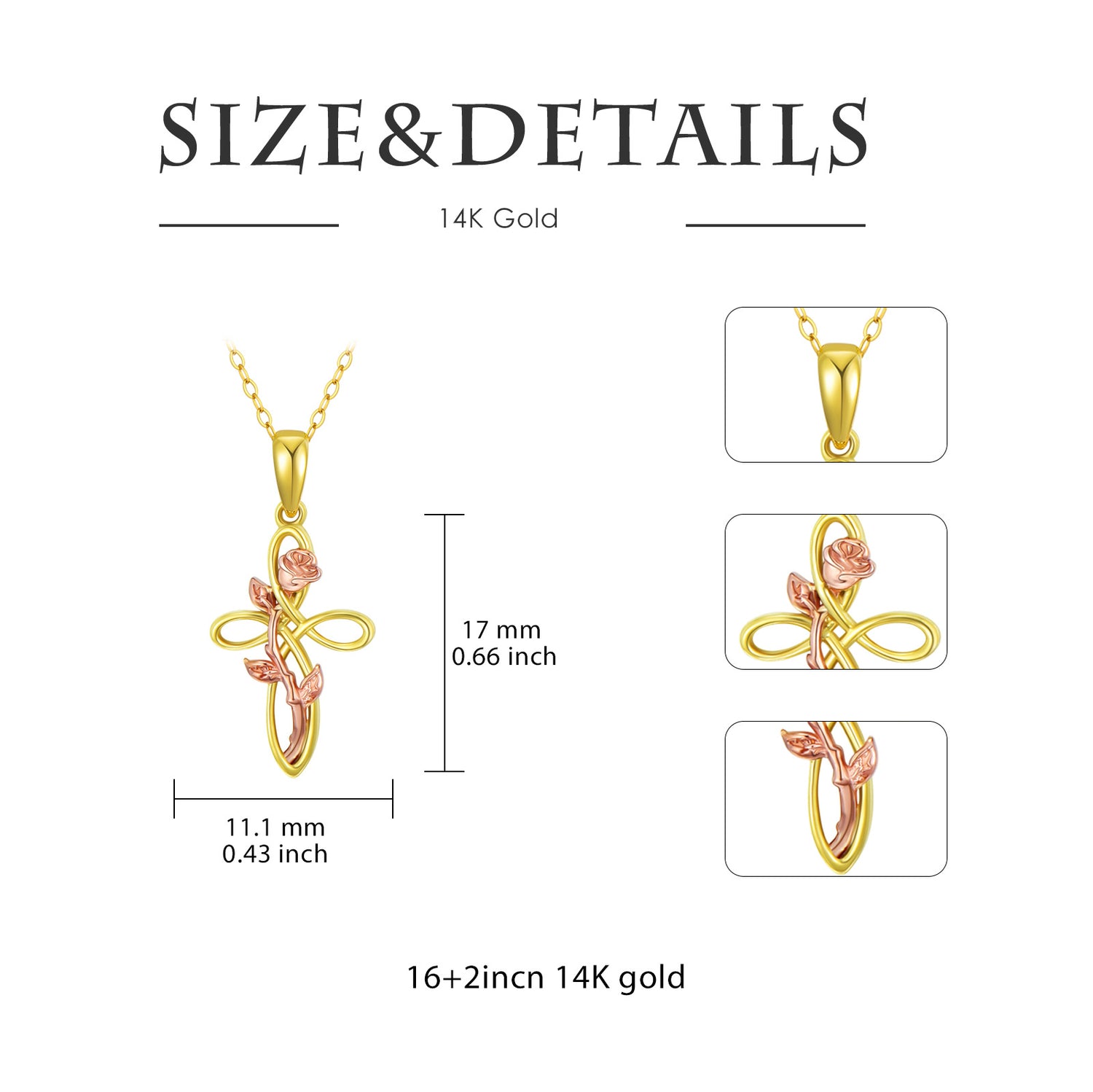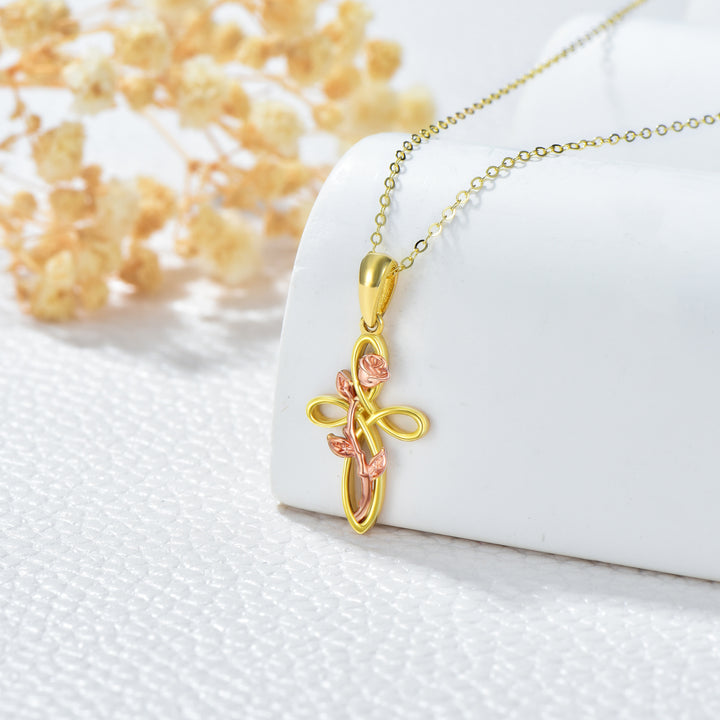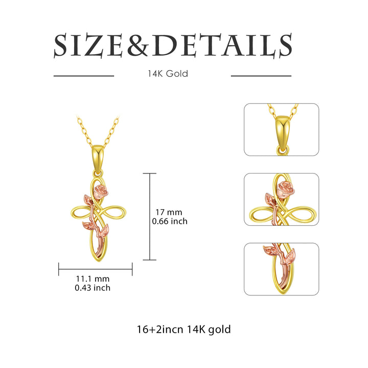 14K Gold Two-tone Rose Pendant Necklace